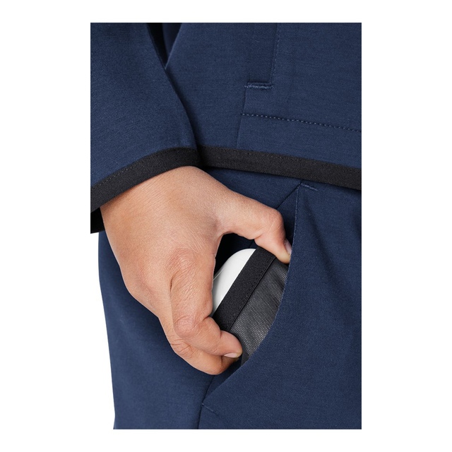 Tech pocket securely stores small essentials like a phone or keys.