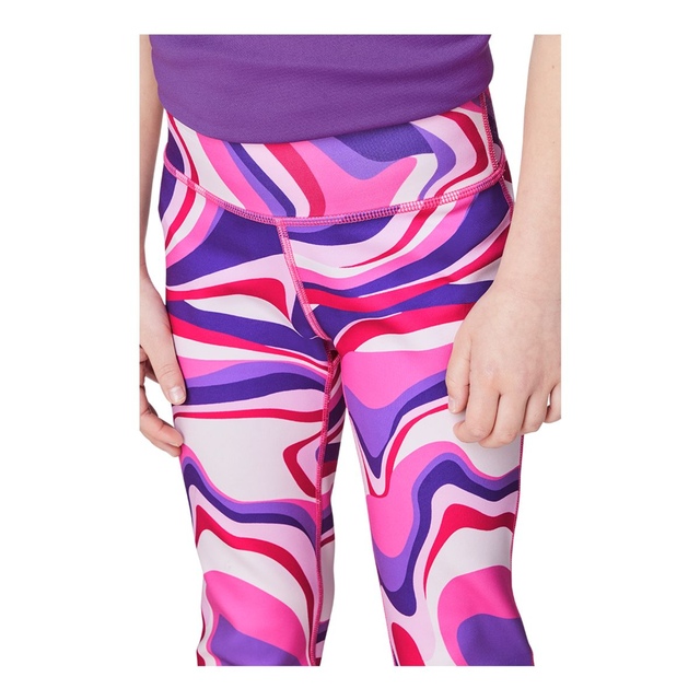 FWD Girls' Printed Crop Leggings blend style and functionality, featuring a vibrant print on eco-friendly stretch fabric. These leggings use moisture-wicking technology to ensure dryness during active pursuits. The cropped design and wide waistband of the FWD leggings enhance freedom of movement and provide a flattering fit.