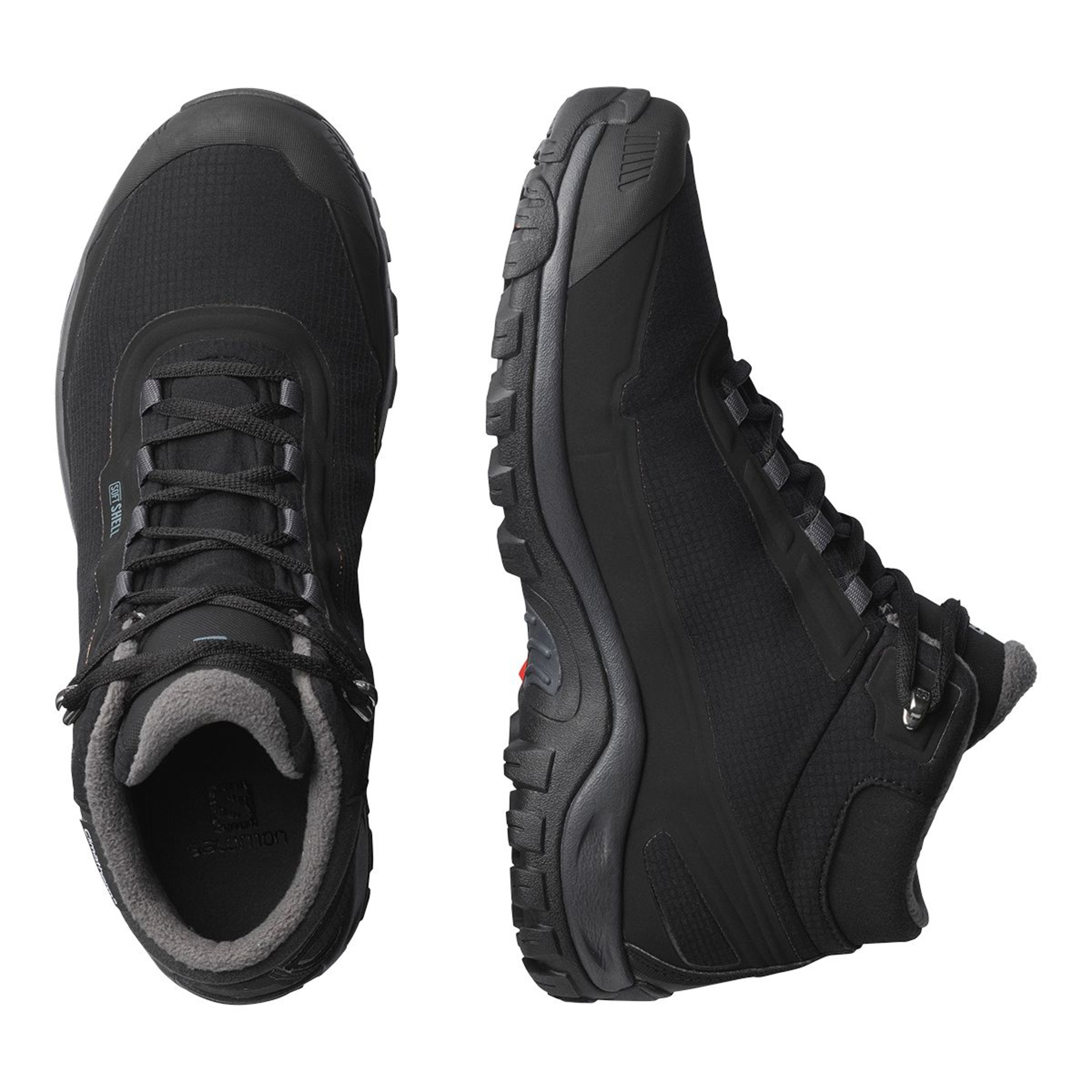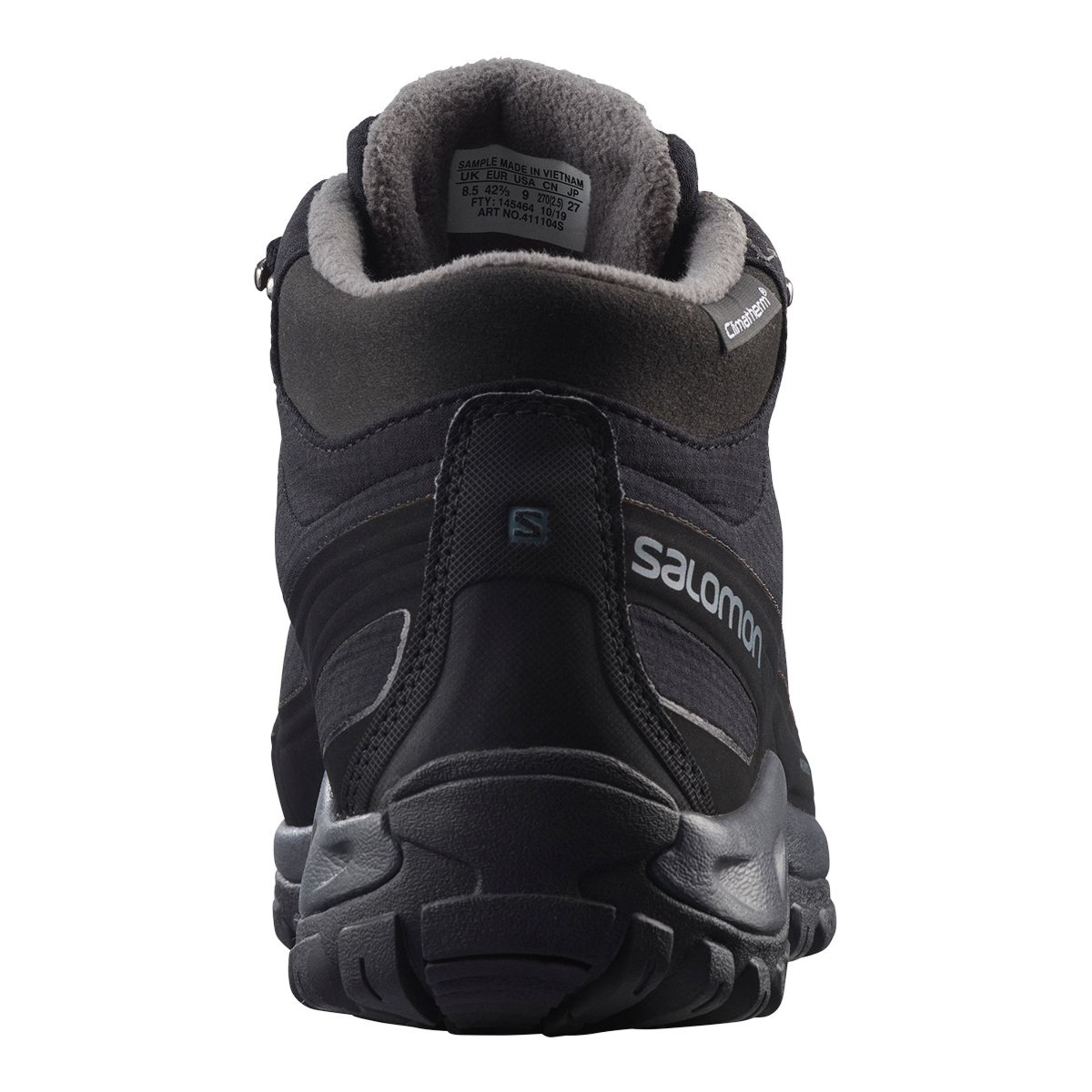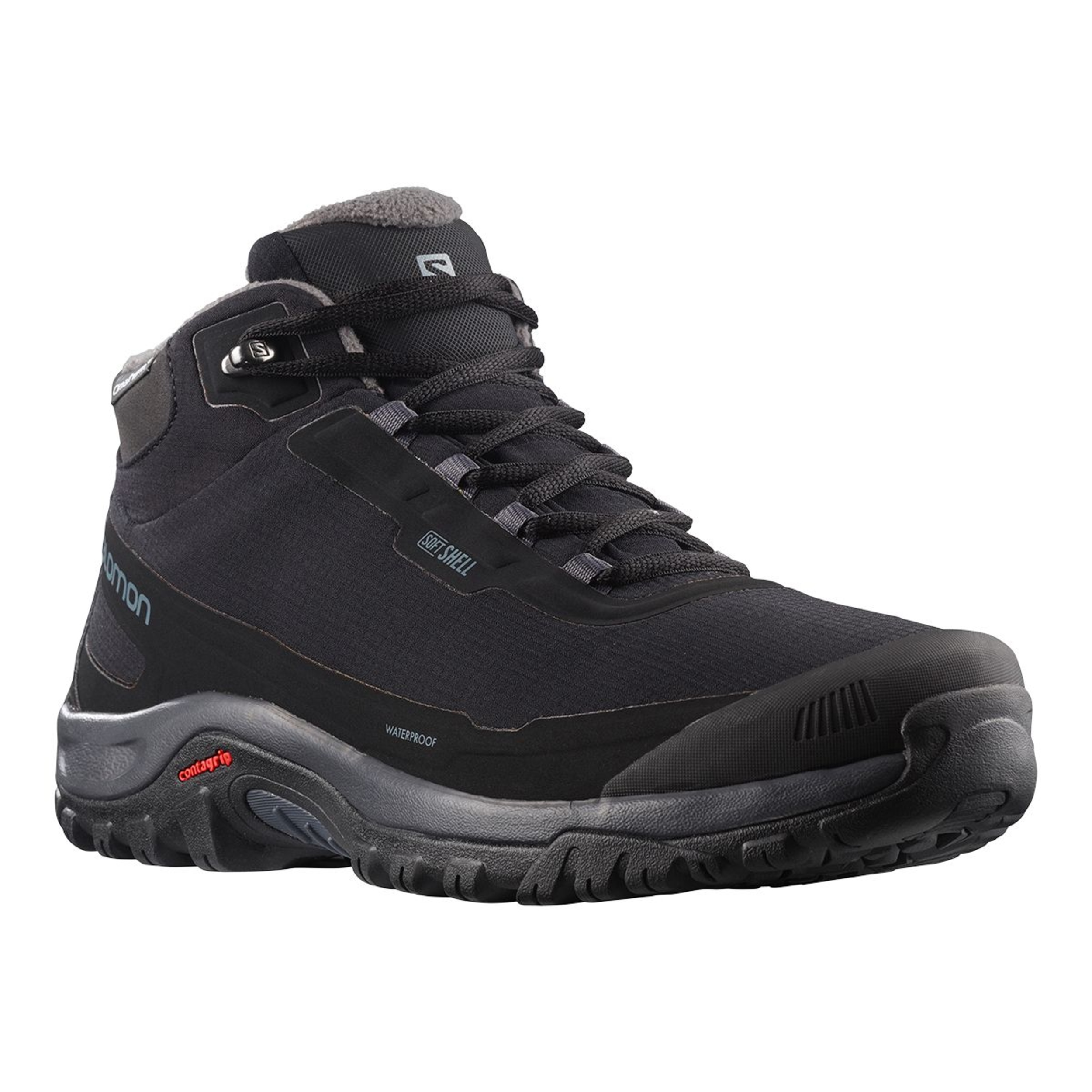 The Salomon Men's Shelter Climasalomon™ Waterproof Winter Boots are the ultimate city shoes for winter. With a clean, softshell style and great fit, these boots provide waterproof protection and comfort. Made with supple, breathable, and durable softshell material, they protect you from rain, snow, and outdoor conditions. The ClimaSalomon™ Waterproof technology ensures complete weather protection. Choose these boots for their modern urban style, lightweight design, and seamless construction.