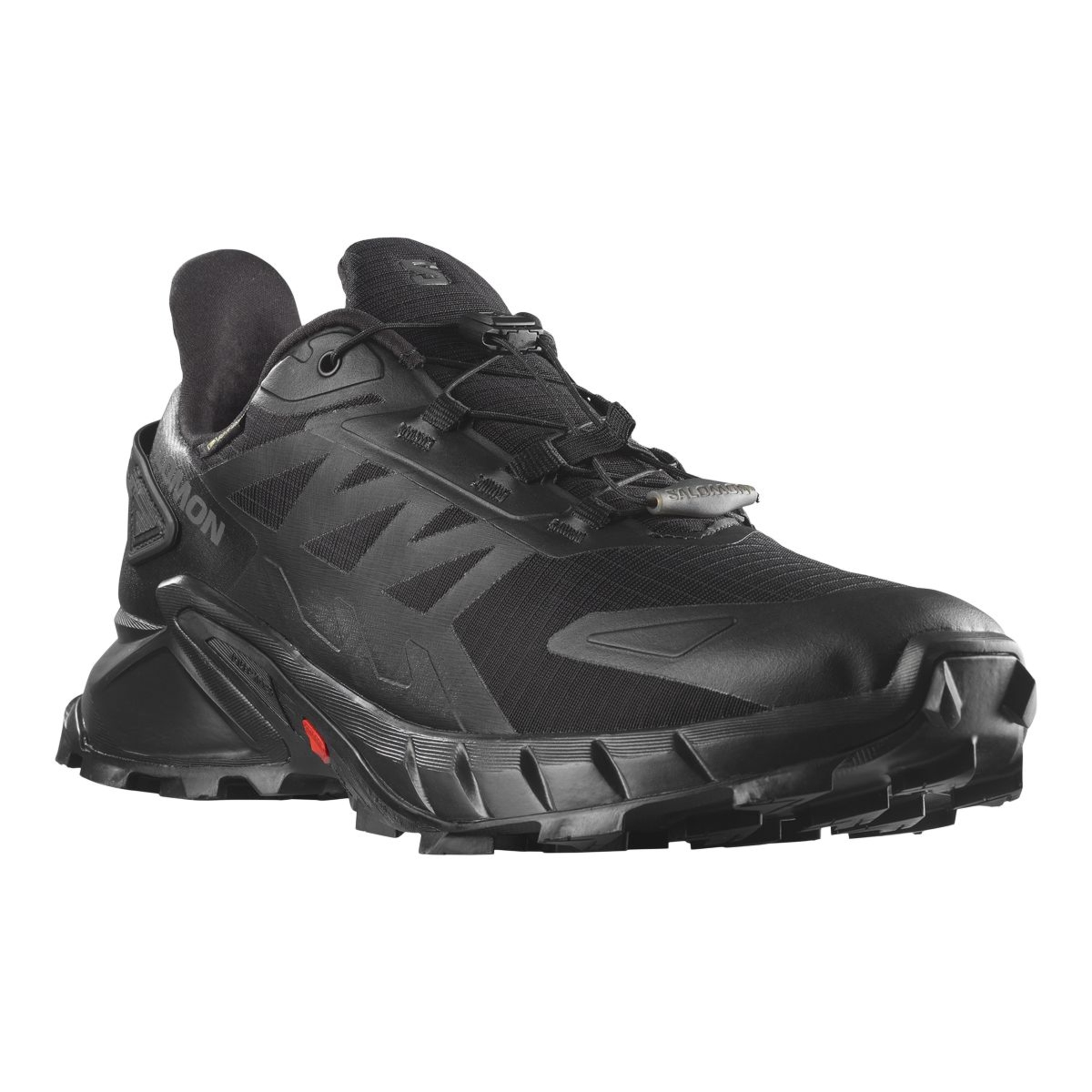 These waterproof Salomon Men's Supercross 4 GORE-TEX Trail Running Shoes provide a generous fit, and feature Fuze Surge foam in the midsoles for a smooth yet dynamic stride. Contagrip® rubber outsoles provide superb grip and the lug geometry on these Salomon runners is tailored for optimal mud shedding and adhesion.