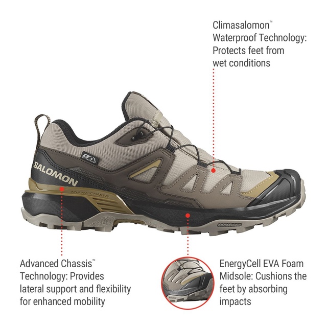 | Advanced Technology | Contagrip® Sole,Clima Salomon Waterproof ™ (CSWP),Quicklace™ |