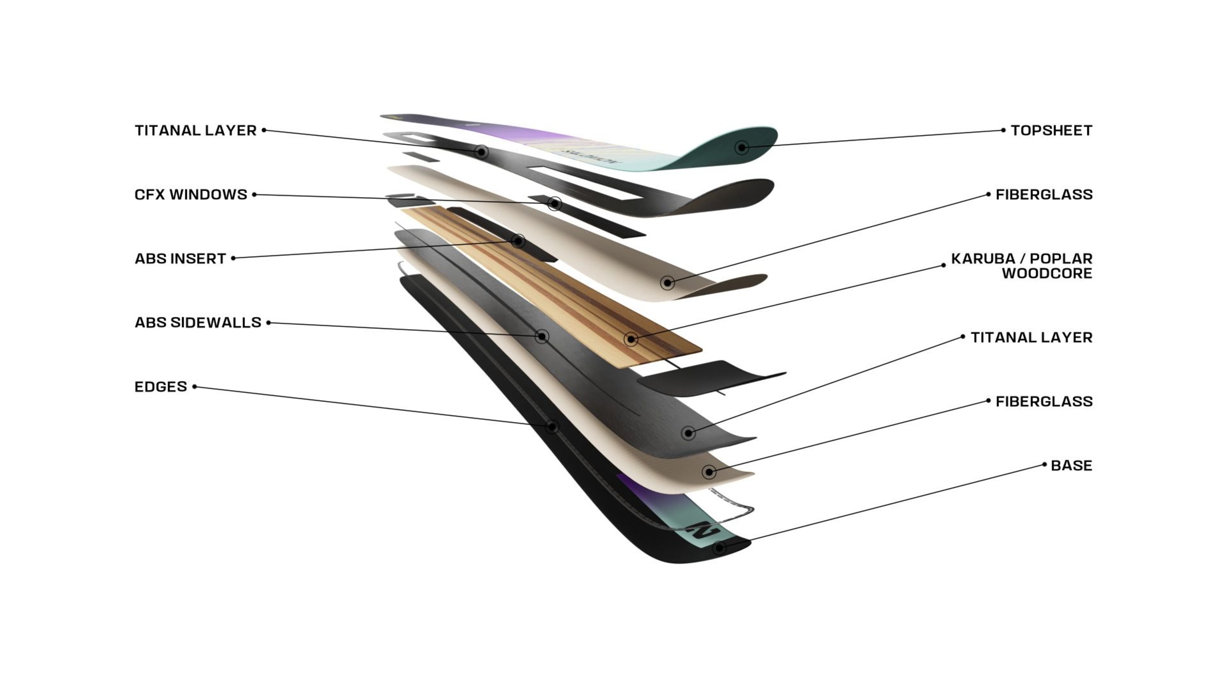 Lively & responsive: A new karuba/poplar wood core combined with a redesigned titanal frame and all-mountain rocker profile offer finesse and agility to this redesigned ride.
