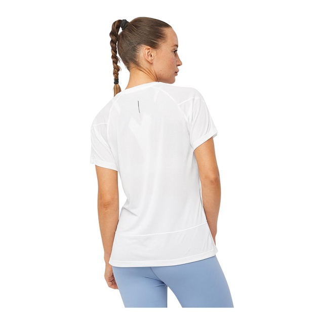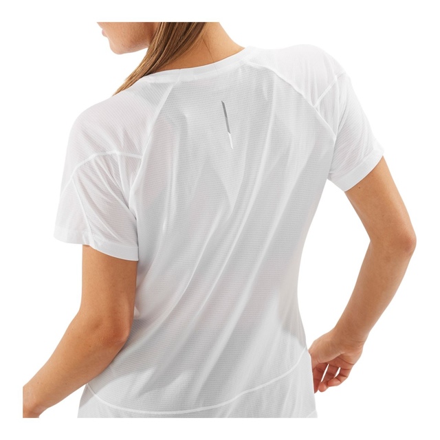 The Salomon Women's Cross Run T-Shirt offers light, breathable comfort with AdvancedSkin ActiveDry technology for superior moisture management. Its active fit balances snugness and freedom, facilitating movement with mechanical stretch and raglan sleeves. The bold, reflective design ensures visibility and style, making this Salomon tee perfect for active pursuits.