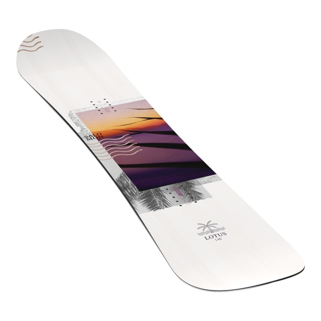 The Lotus snowboard features a soft flex and a forgiving profile, facilitating progression and lowering consequences for beginners. This directional twin features Bite Free Edges for a catch free ride.