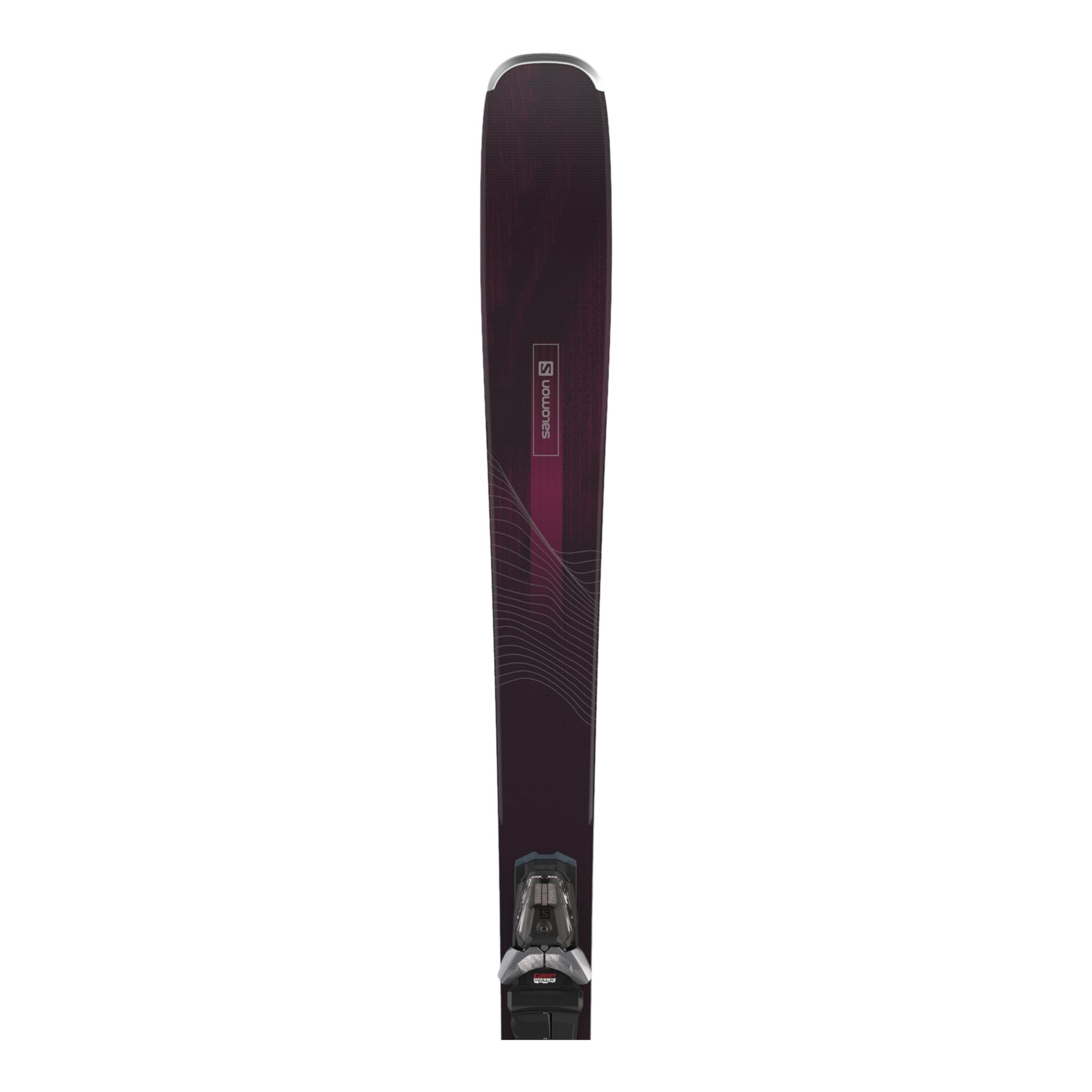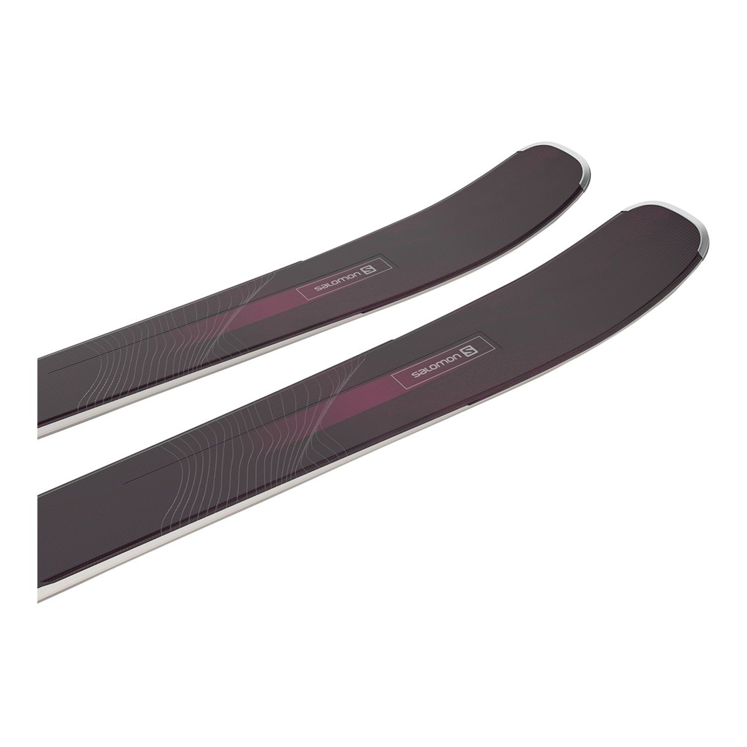 Salomon's Women's Stance All Mountain Skis 2023 With M11 GW Bindings are designed to be light and responsive, making them suitable for a variety of conditions. These skis are perfect for carving steep slopes or cruising along groomed corduroy. The karuba/poplar wood core combines a progressive sidecut with a lively wood core that ensures agility and reliability on the slopes. With carbon in the construction, these all mountain skis enhance snow-feel and responsiveness pereformance. The M11 binding completes the system.