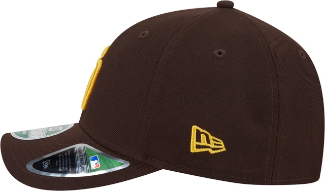 The San Diego Padres New Era Player Replica 9FORTY Cap is an updated silhouette with a semi-full shape that more closely replicates the on-field cap. This modern visor is slightly shorter and less curved for minimalistic style. Embroidered Padres logo on the front panels with a matching MLB Batterman logo above a snapback closure at the rear, finished with a black undervisor for a true replica look.