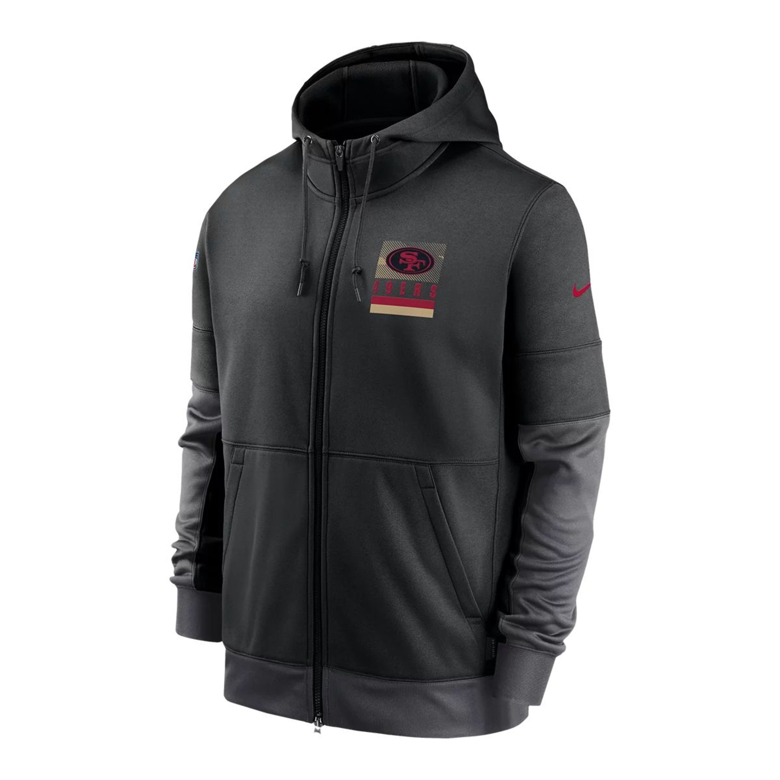 Zip up the San Francisco 49ers Nike Men's Sideline Therma Full Zip Hoodie to represent the Niners fandom while benefitting from the warmth and moisture management of Nike Therma and Dri-FIT technologies.
