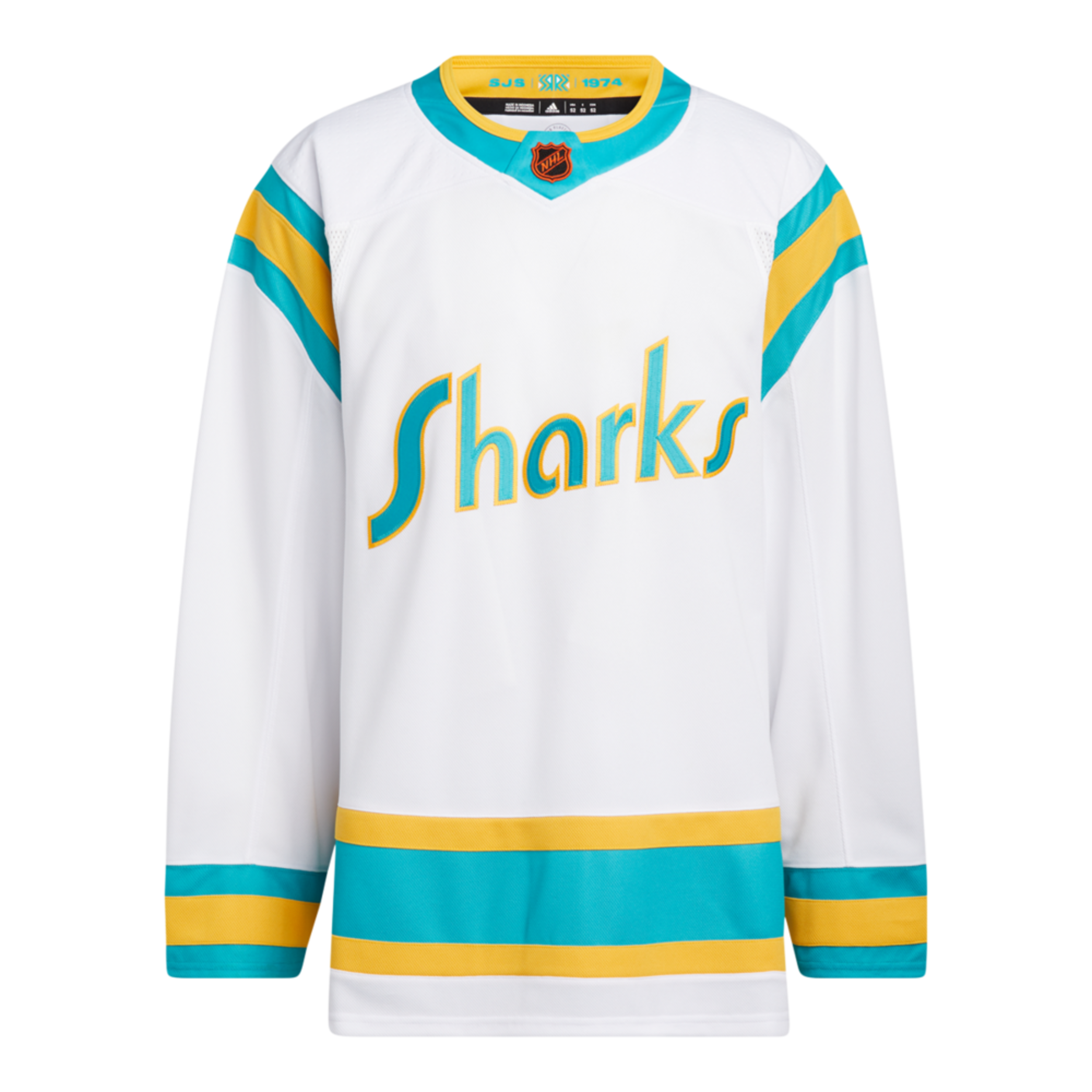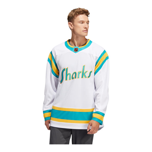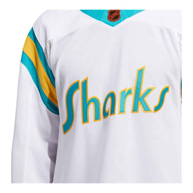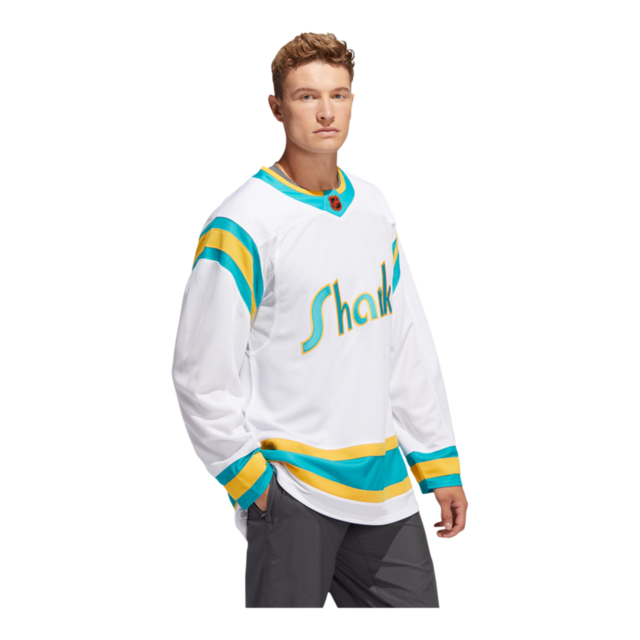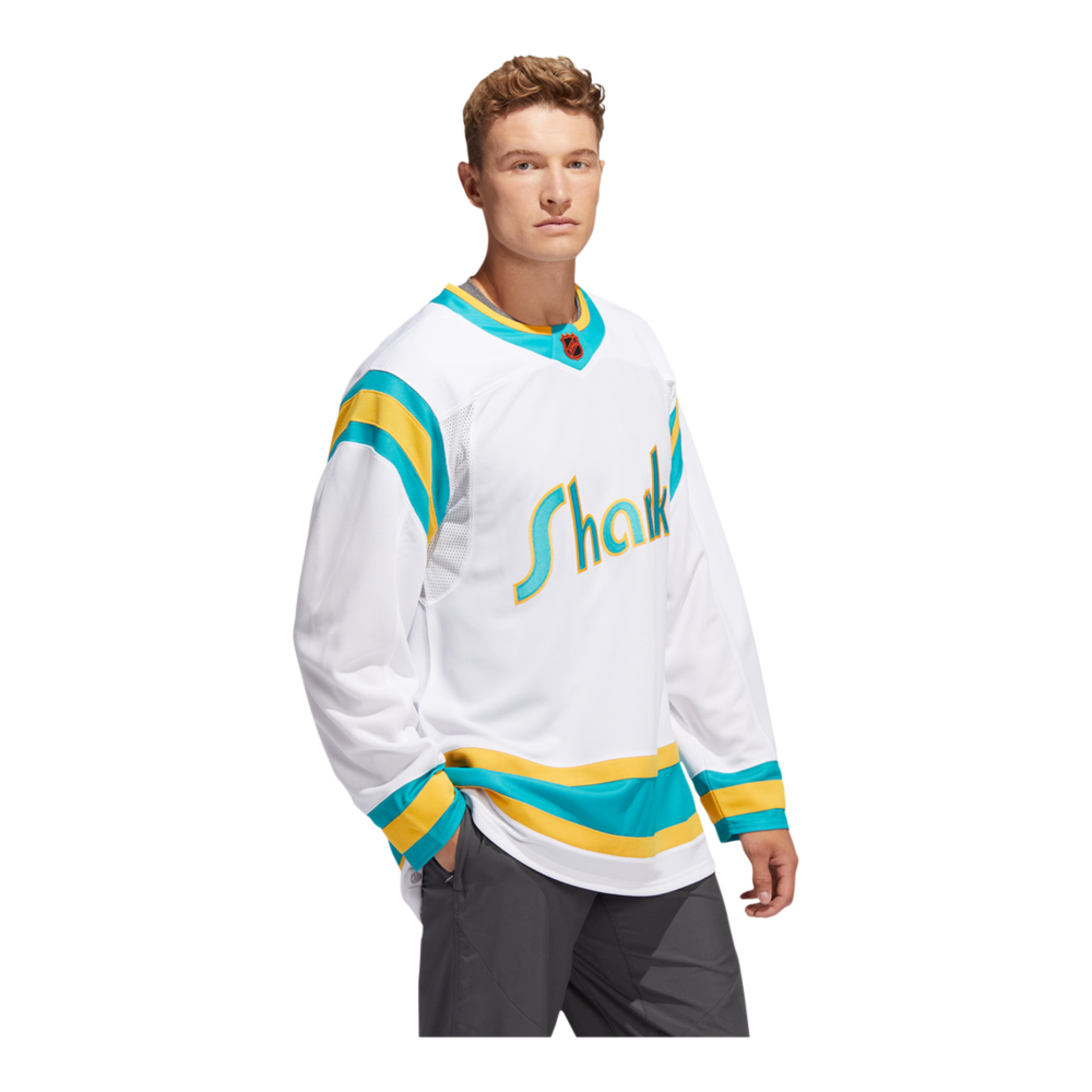When the NHL's California Golden Seals exited the San Francisco Bay area, it's rumoured the arriving San Jose Sharks were inspired by the Seals' final, 1974 kit. Remixed by adidas with a bold design and the planet in mind, both the Pacific Blue and far-out Seals' font score again in this Sharks jersey. Made with 100% recycled materials, this product represents just one of adidas' solutions to help end plastic waste.