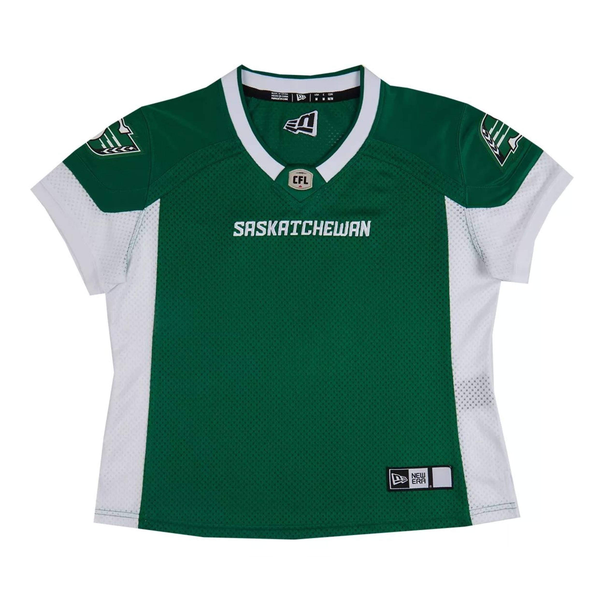 New for the 2019/20 CFL Season! Usher in a New Era in the Canadian Football League with the Saskatchewan Roughriders Women's New Era Replica Home Jersey. Featuring a 100% Polyester double hole mesh body with a CFL crest on the collar you’ll be ready to go for kick-off!