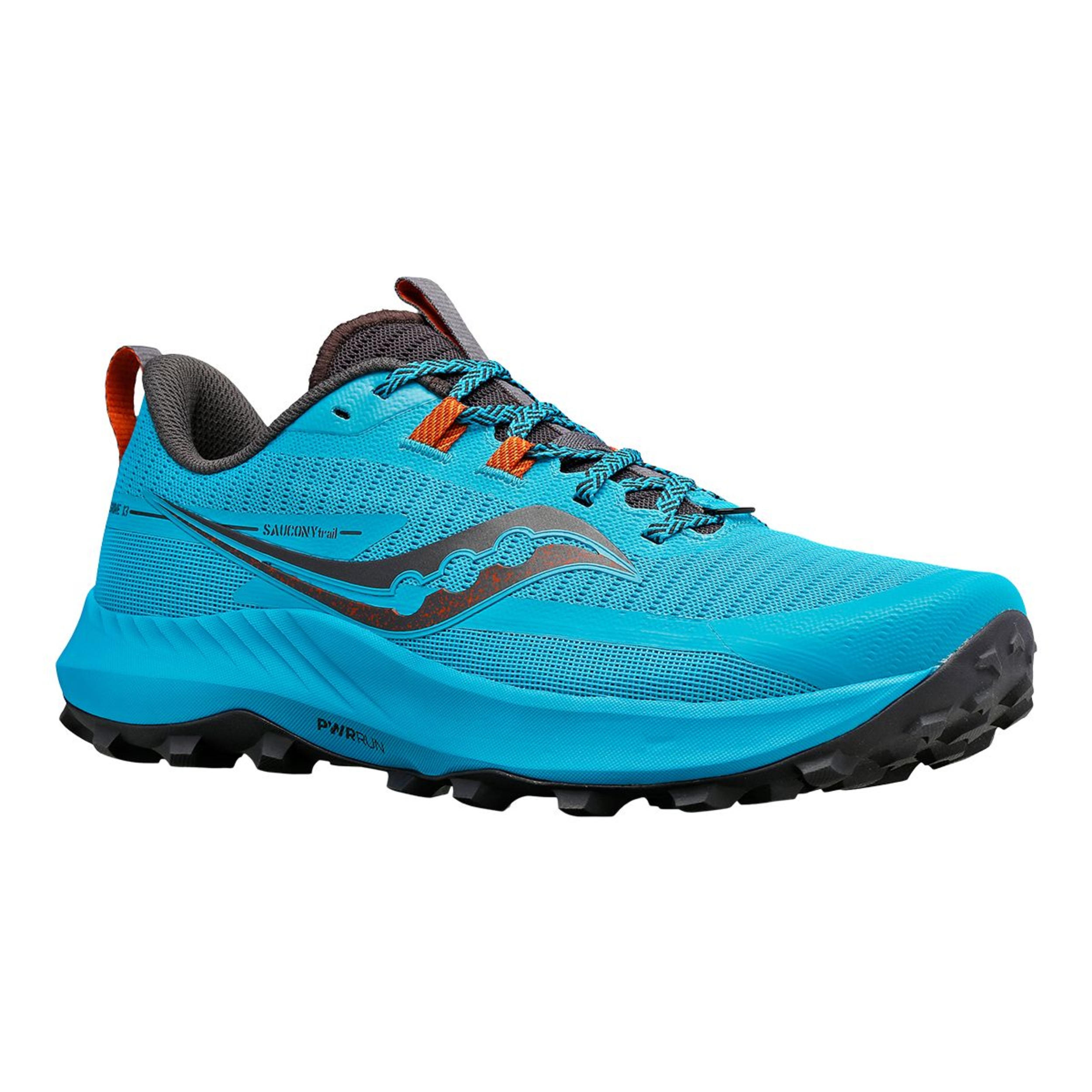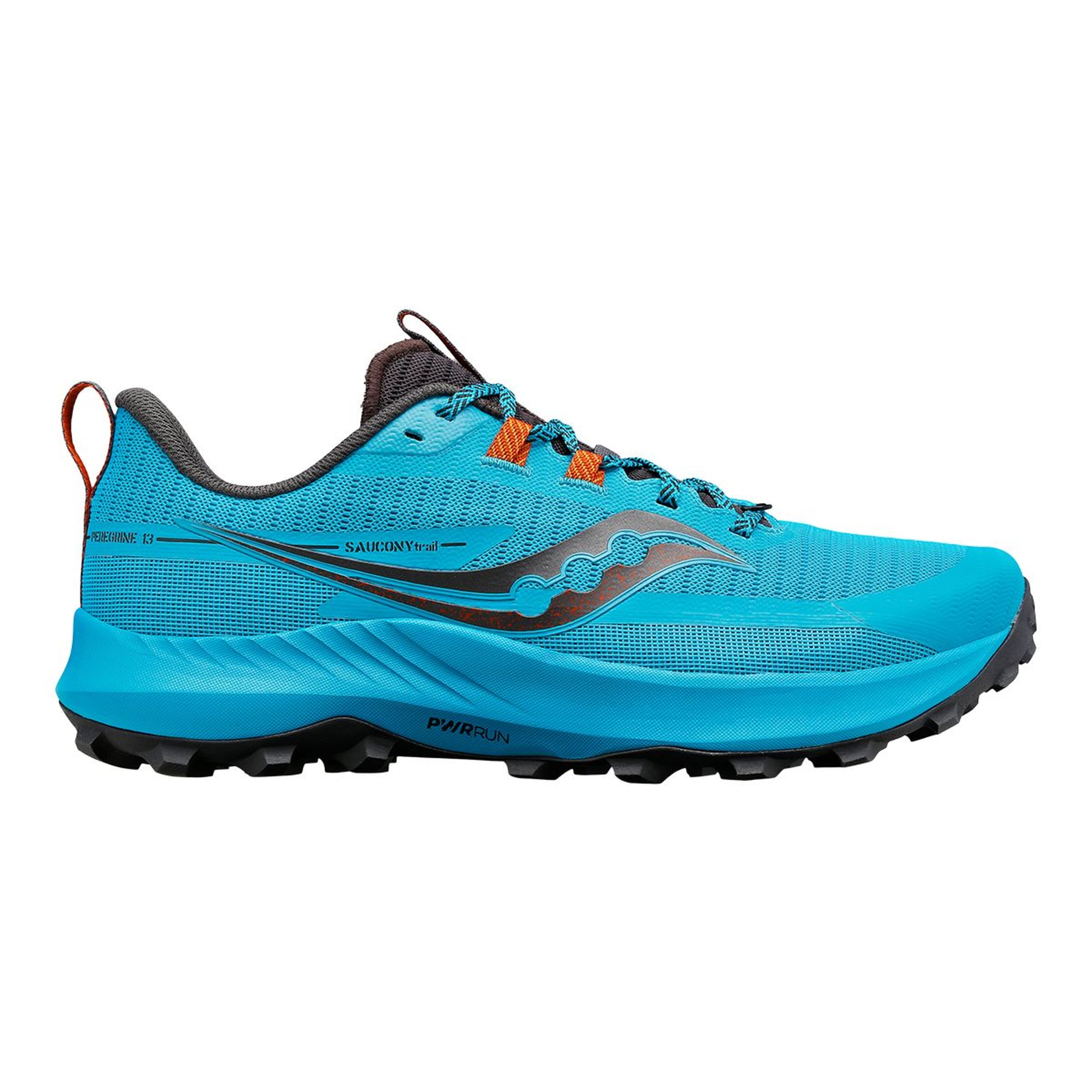 Saucony Men's Peregrine 13 Trail Shoes deliver unparalleled traction for off-road running. Lightweight PWRRUN foam provides cushioned comfort on bumpy surfaces, while the WRTRAC rubber outsole delivers optimal grip. The Peregrine 13 includes eco-friendly, recycled content for enhanced sustainability.