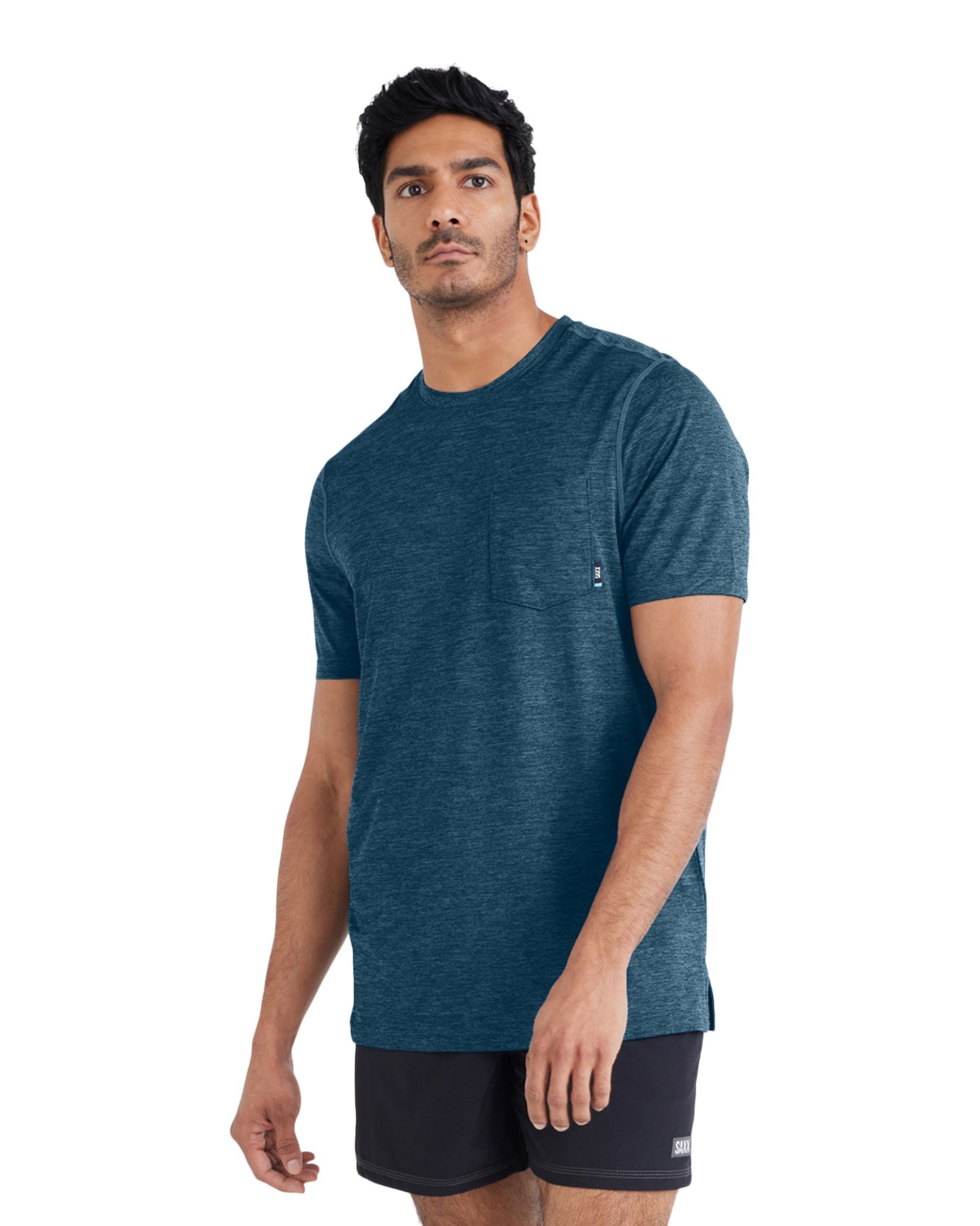 The SAXX Men's DropTemp™ Pocket T Shirt is the ultimate cooling shirt designed to keep you comfortable all day. The relaxed fit provides a casual, everyday look perfect for disk golf, work or weekend barbecues.