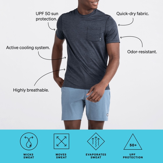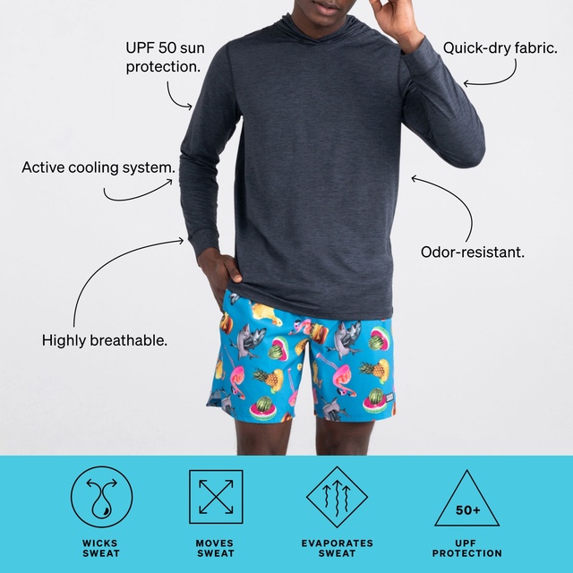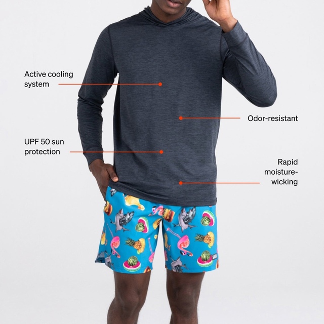 The SAXX Men's DropTemp™ UPF 50 Pullover is designed for hot-weather watersports. It has the DropTemp Active Cooling System plus UPF 50 sun protection to make your time on the water more enjoyable. Pull on this hoodie and enjoy ultimate freedom and high-temp comfort while making the most of sunny days.