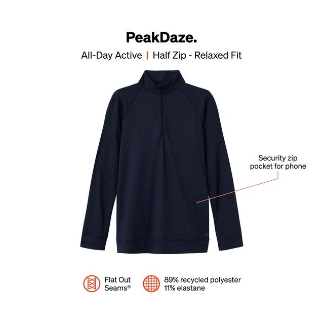 You may be interested in these similar products shown below.The SAXX Men's PeakDaze Half Zip Long Sleeve Top blends casual comfort with technical performance for all-day wear.