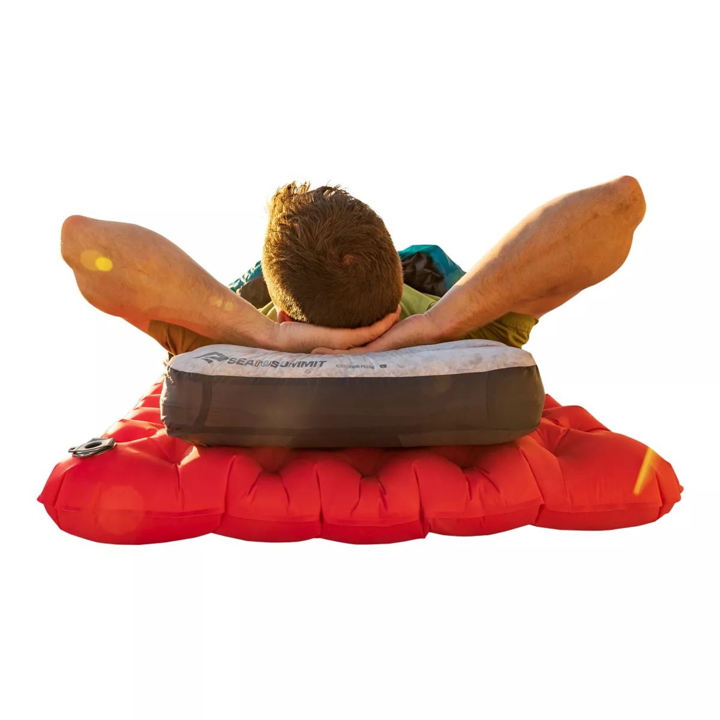The Sea to Summit Aeros Down Pillow features a down cushion-top, ultralight TPU bladder and technical fabrics for optimal warmth and support. It comes with a compact 20D stuff sack and easy-to-use mini-valve. This large Sea to Summit pillow is easy to clean with gentle hand wash and air drying as needed.