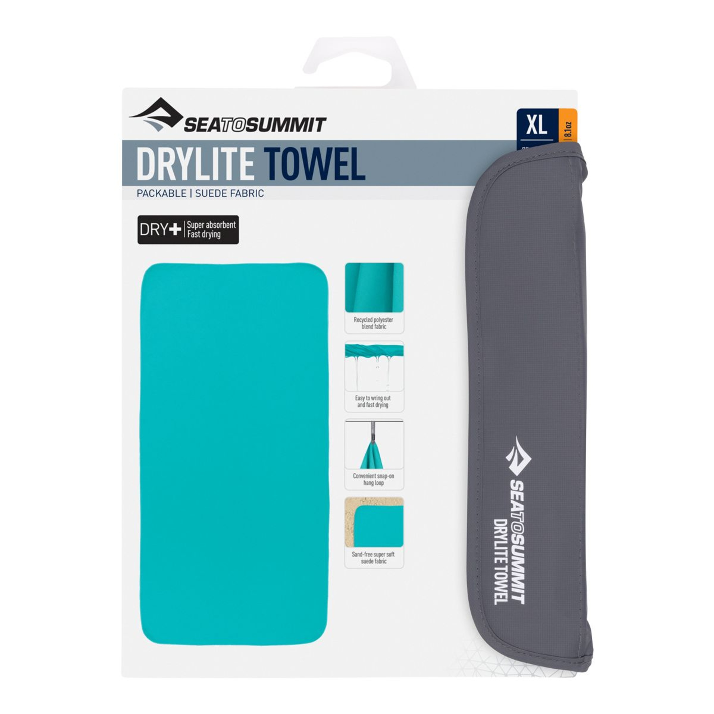 The Sea To Summit Drylite Towel combines eco-conscious design with exceptional functionality. Made from a recycled polyester and nylon blend, this extra large microfibre towel features a super-soft ultra-suede finish. It's highly absorbent and dries quickly. This Sea To Summit towel has a convenient press stud hang loop and it packs into the provided storage pouch.