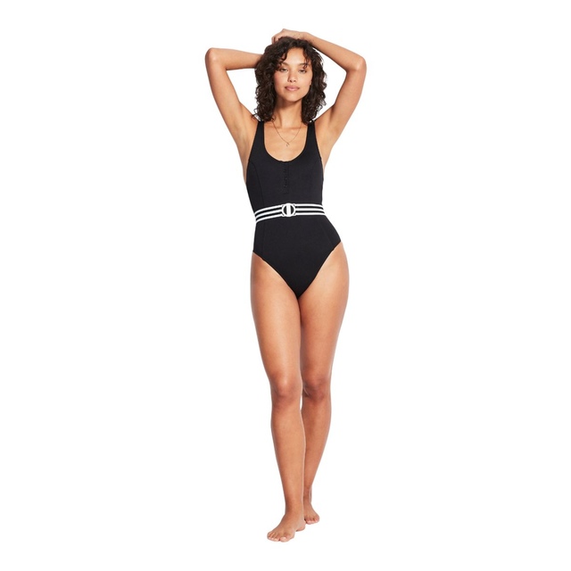Online Exclusive: Simplicity and minimalism are Seafolly’s new luxuries, with striped elastic belts, logo buckles, button down swim fronts, and scooped necklines. While minimal, you will love the support and feminine fit of the Seafolly Belted One Piece: