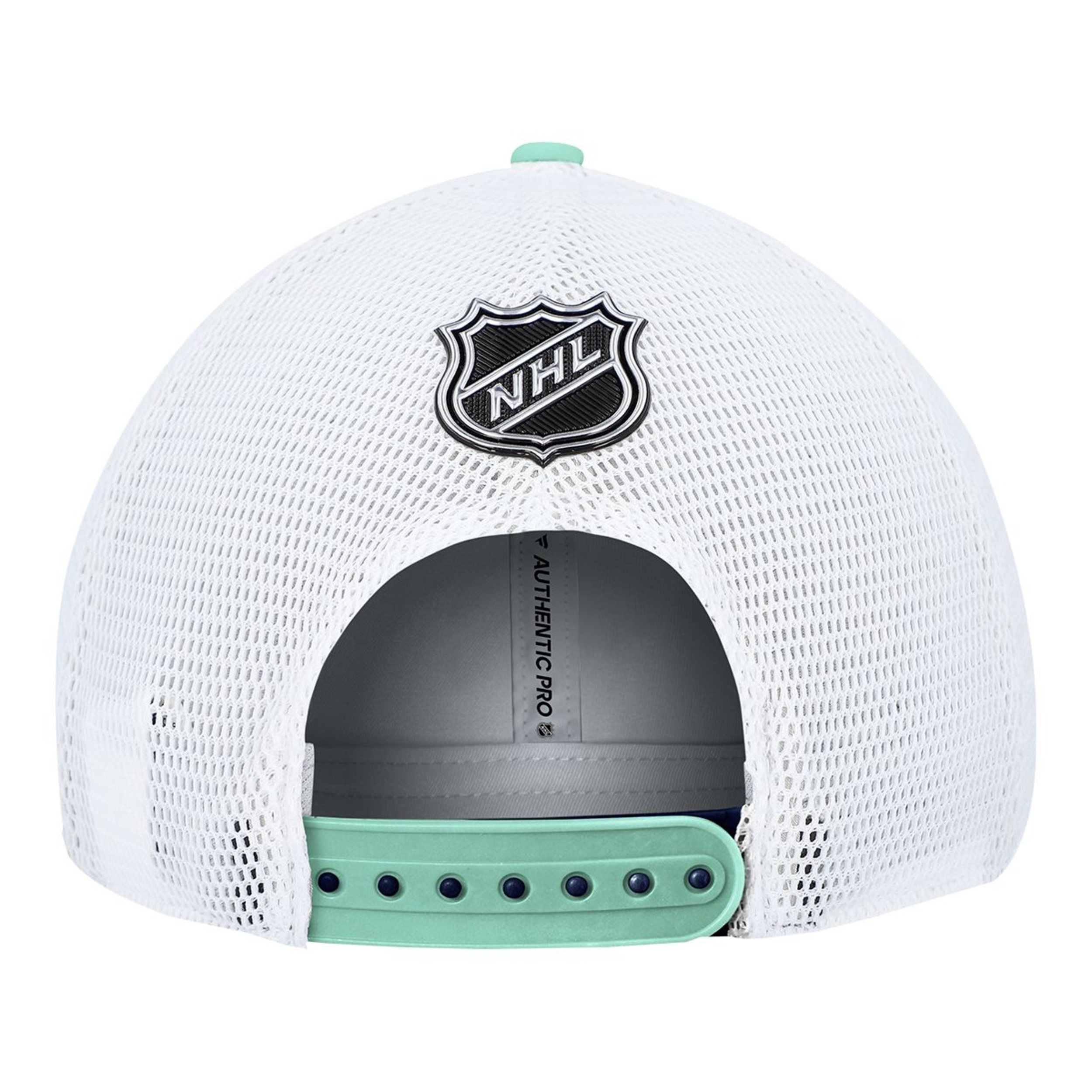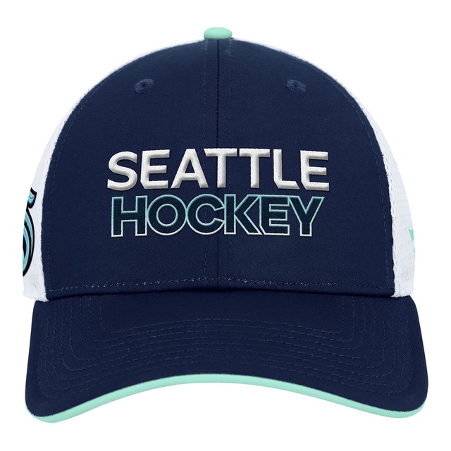 Gear up for game day with the Seattle Kraken Fanatics Authentic Pro Rink Structured Trucker Cap. This officially licensed NHL cap is the perfect blend of classic style and team spirit. Featuring the iconic Kraken logo, this structured trucker cap keeps you looking sharp while showing off your fandom. The adjustable snapback closure ensures a comfortable, customized fit, so you can rock your team colors with pride. Whether you're cheering on the Kraken at the rink or repping them around town, this cap is an essential addition to any hockey enthusiast's wardrobe. Embrace the thrill of the game and let your Kraken pride shine through with this must-have accessory.