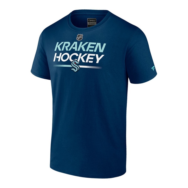 The Seattle Kraken Fanatics Authentic Pro T Shirt is designed for devoted fans. Crafted from soft, breathable 100% cotton, this tee features a vibrant, screen-printed Kraken logo that won't peel. The authentic pro fit provides both comfort and style.