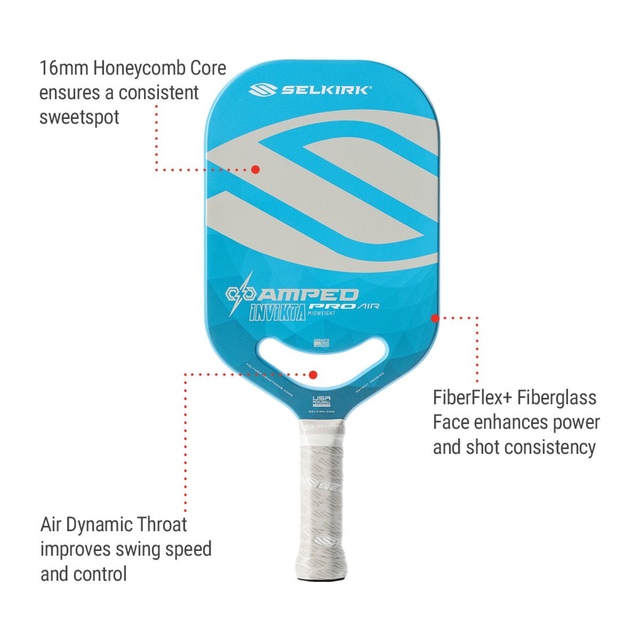 The Selkirk Amped Pro Air Invikta Senior Pickleball Paddle is for players seeking limitless power and supreme reach. This uncompromising paddle, offers the smooth, familiar feel of an all-court paddle, alongside the next-level technology necessary to dominate on the court. The blend of power and control makes it suitable for competitive play, offering players the edge they need and the effortless control they deserve.