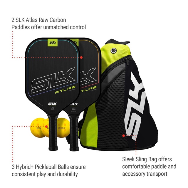 The Selkirk Atlas Max Senior Pickleball Bundle is a technology-driven set designed for emerging players seeking control and spin. Featuring a raw carbon surface, the Atlas paddle provides a crisp, responsive feel for accurate shot placement. This bundle includes all the essentials to elevate your game, offering exceptional performance.