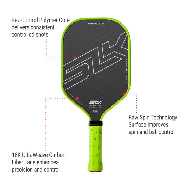 The Selkirk Halo Control XL Senior Pickleball Paddle provides optimal spin and control for pickleball enthusiasts of all skill levels. The EdgeSentry low-profile guard ensures a well-balanced, durable paddle.