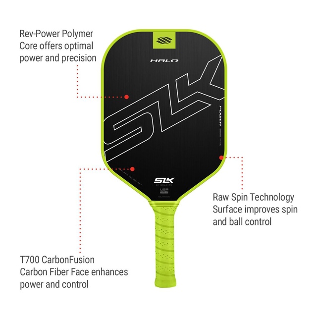 The Selkirk Halo Power Max Senior Pickleball Paddle delivers explosive power and spin with every swing. Crafted from T700 Raw Carbon Fibre, this thermoformed paddle features a rigid 13mm core and a textured surface for maximum drive and precision. Dominate the court with unmatched control and spin with the Halo Power.