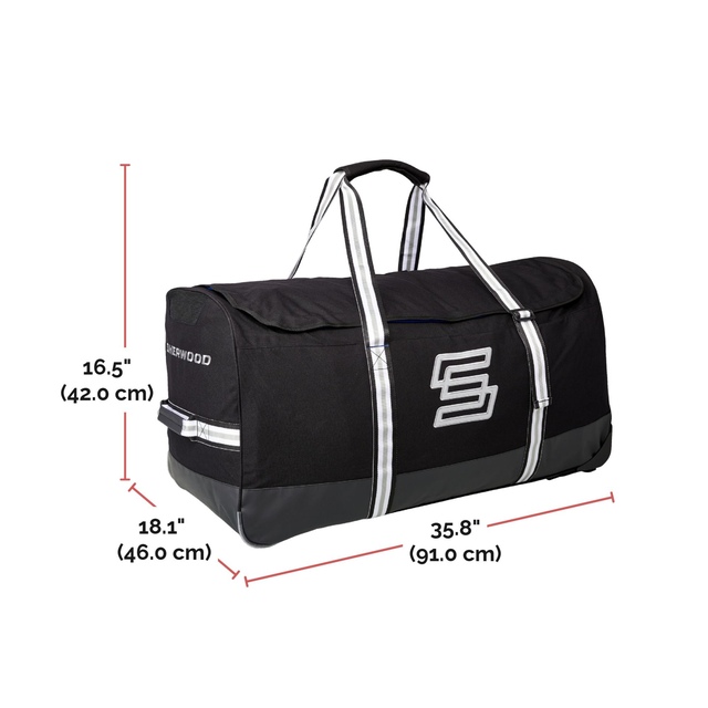 Introducing the all new Sherwood CODE Bag, featuring a large U-shape opening with a covered zipper. This hockey bag is ready for anything thrown into it with reinforced grab handles on each end and PVC mesh ventilation panels. The bag also comes with interior accessory bags including a toiletry kit, laundry bag, helmet bag and two skate pockets, all of which are detachable.