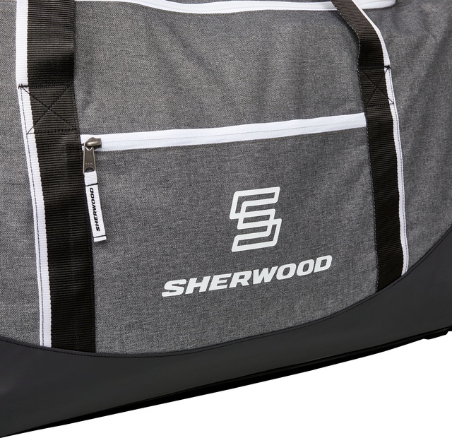 The Sherwood REKKER Team Wheel Bag is a great choice for the player looking for a durable yet practical hockey bag. Featuring two zippered side pockets for skates or accessories and a small front zip pocket, this bag can hold all of your hockey gear and more. Built to last the bag has reinforced grab handles on each end and has a tarpaulin protected bottom.