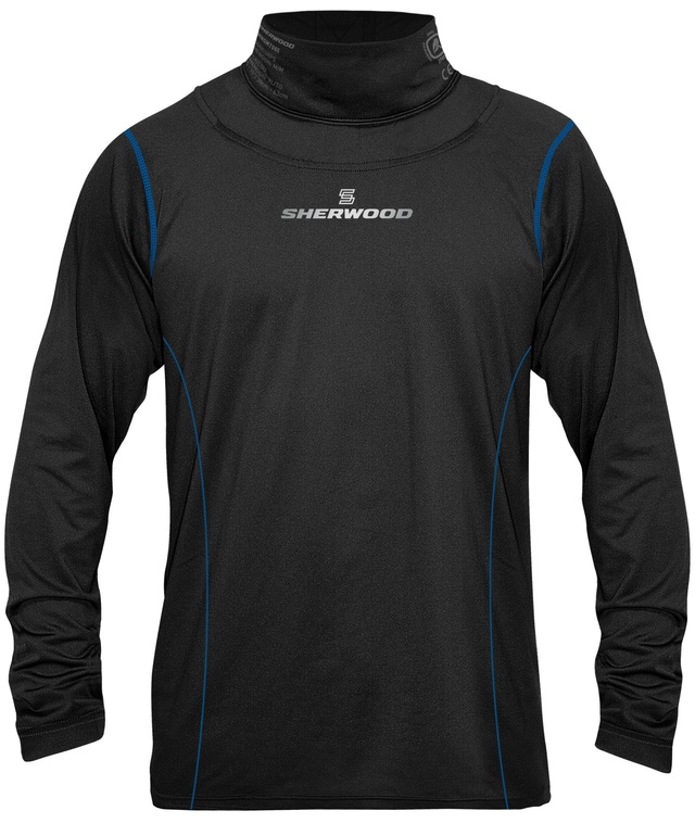 This BNQ certified Sherwood Senior Hockey Neck Guard Long Sleeve Top offers cut resistant protection against skate blade laceration and is integrated into a long sleeve comfort-fit long sleeve top.