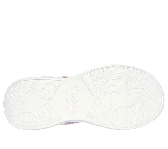 Brighten up your day with a little unicorn fun wearing Skechers S-Lights®: Unicorn Dreams - Wishful Magic. This unicorn themed Magical Collection® light-up sneaker features an ombre synthetic upper with metallic print detail, stretch laces with an adjustable instep strap, unicorn embellished midsole, and a cushioned comfort insole.