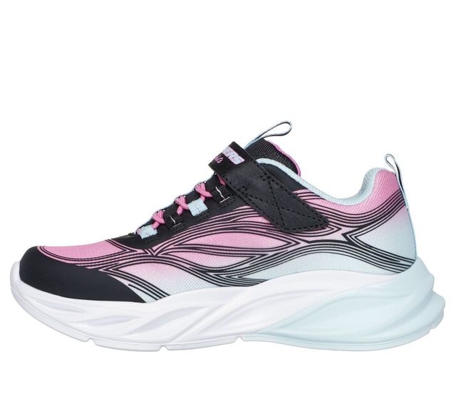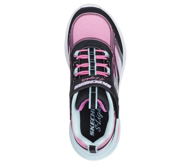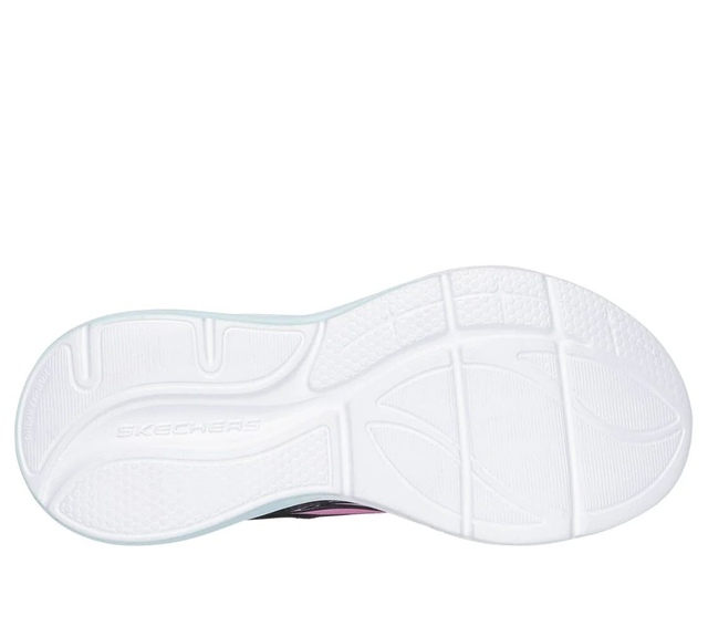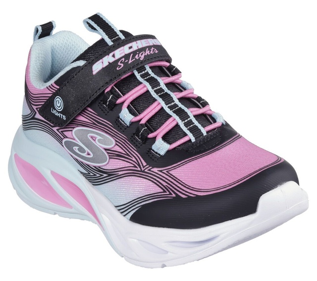 Light up the playground in Skechers Kids' S-Lights Cosmic Glow Sneakers. Featuring an ombre sparkle mesh and synthetic upper with stretch laces, an adjustable instep strap, and a well-cushioned midsole with step-activated lights. The shock-absorbing midsole provides cushioned comfort, while the flexible traction outsole ensures stability. Kids will love the on/off light button for customized wear. With a fun glow and adaptive easy on/easy off closure, the S-Lights Cosmic Glow sneakers are ready to illuminate any adventure.