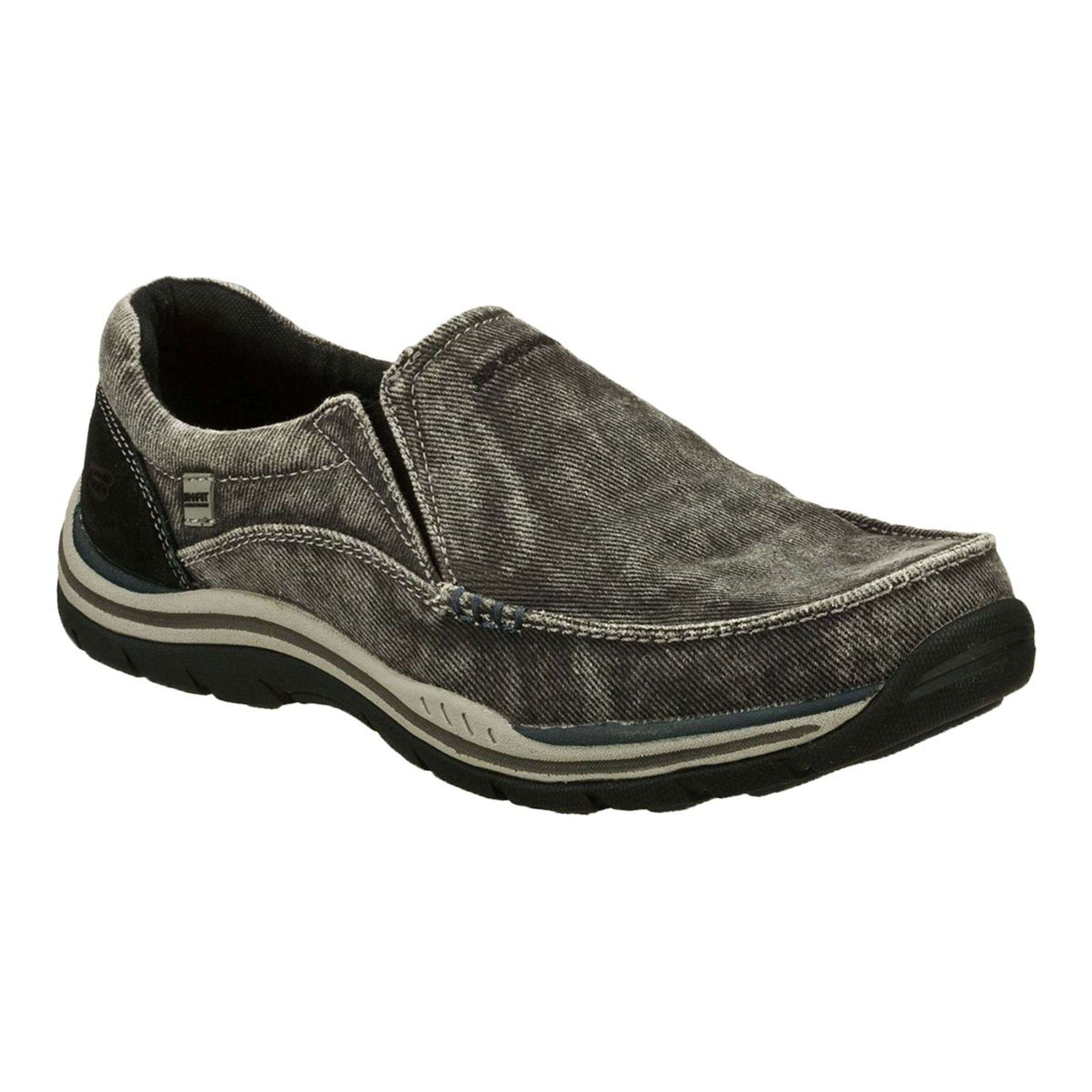 Featuring a washed, distressed canvas finish for a laid-back look, these Skechers Expected Avillo slip-on shoes are ideal for everyday casual wear. They’re designed with a Relaxed Fit® for a roomier feel, and a memory foam-topped insole provides reliable cushioning and support. The shock-absorbing midsole offers even more support for all-day comfort, and the soft fabric lining is soft and breathable, so they can be worn without socks in the summer.