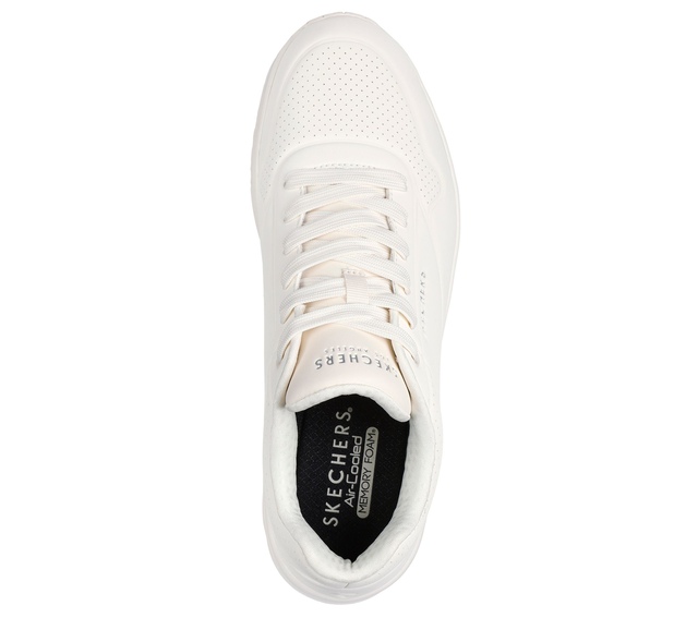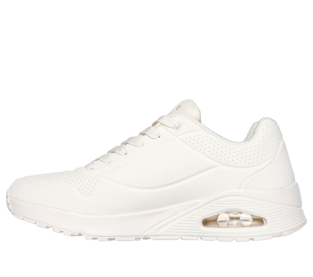 Classic air-cushioned comfort meets a fresh update in the Skechers Street™ Street Uno - Stand on Air shoe. This lace-up fashion sneaker features a smooth perforated synthetic upper with an Air-Cooled Memory Foam® insole and Skech-Air® visible air-cushioned midsole.