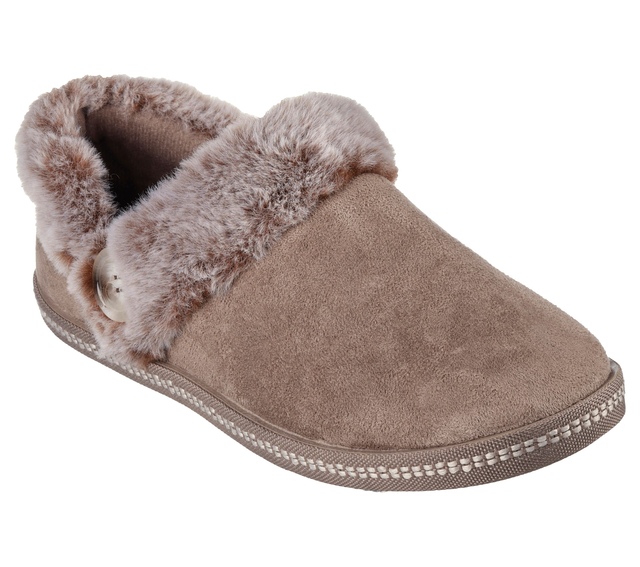 Stay cozy with the Skechers Women's Cozy Campfire Fresh Toast Slippers. These slip-on slippers feature a soft woven fabric upper, warm lining, and faux-fur trim for ultimate comfort. The Memory Foam cushioned insole offers a plush feel, while the flexible rubber outsole provides reliable traction. With a rounded toe and low-profile shock-absorbing midsole, they ensure all-day comfort.