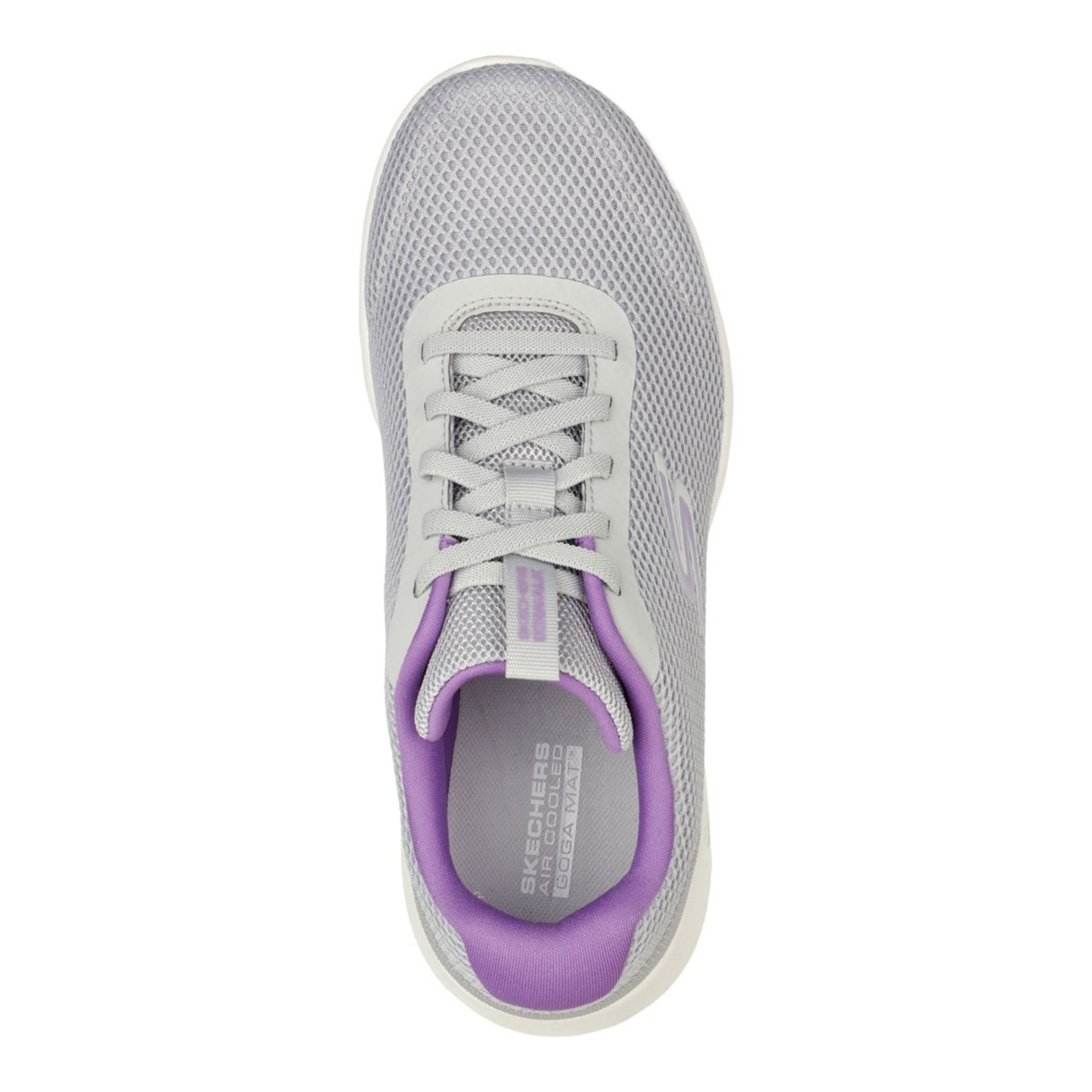 Get up and moving in easy-wearing lightweight comfort with Skechers GOwalk Joy - Light Motion. This Stretch-Fit lace-up features an athletic mesh and synthetic upper with stretch-laced front, Air-Cooled Goga Mat™ insole and an innovative 5GEN cushioned midsole.