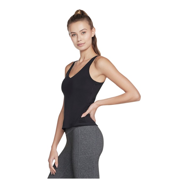 Versatile comfort comes easily during your workouts and post-gym chill sessions with Skechers GO SCULPT™ V-Neck Tank. Featuring a breathable Skechers GO SCULPT™ moisture-wicking 4-way stretch fabric, V-neck and removable Skechers Air-Cooled Memory Foam® cups with breathable shelf bra lining.