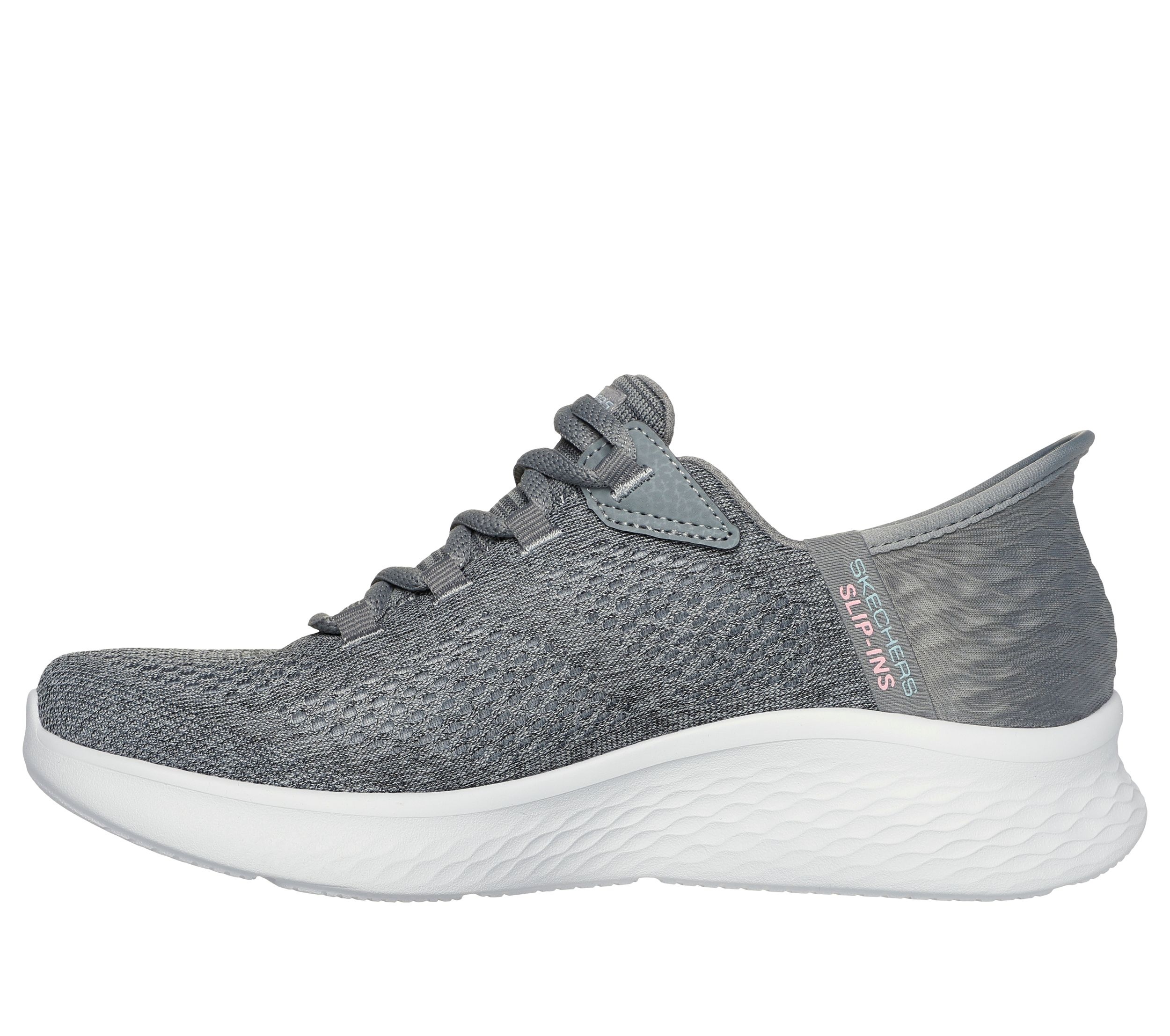 Step into comfort with Skechers Hands Free Slip-ins®: Skech-Lite Pro - Natural Beauty. Designed with our exclusive Heel Pillow™, this lace-up vegan design features an engineered heathered mesh upper with a cushioned Skechers Air-Cooled Memory Foam® insole.