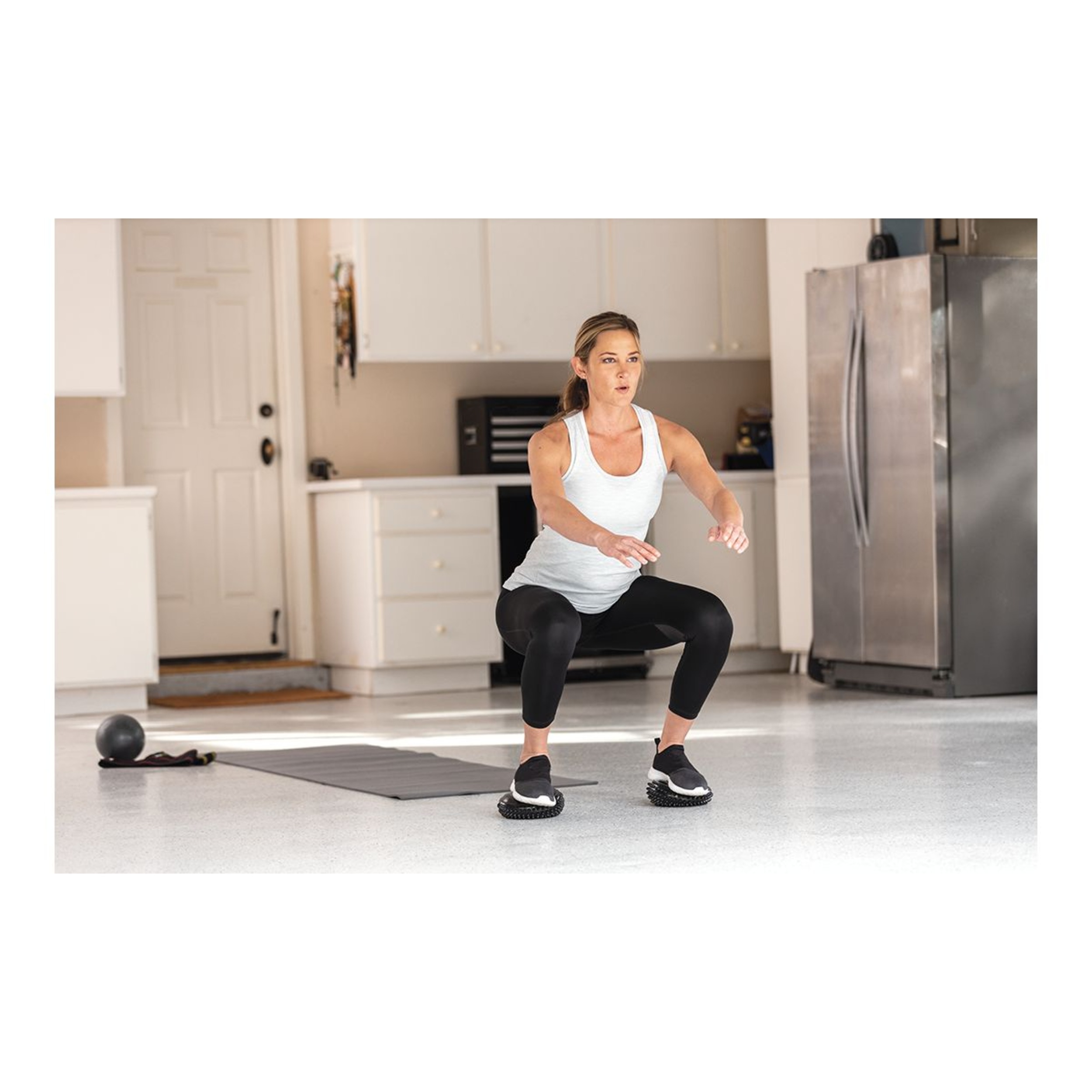 The Balance Pods can be added to any movement to increase difficulty, improve stability, and strengthen core muscles. Use the pods for a variety of static and dynamic movements on hands, knees, and feet during workouts that incorporate stability such as air squats, planks, or push-ups. The dual textured slip-resistant design creates two levels of difficulty and instability during movements. The pods are inflatable, lightweight and portable for use anywhere. Use at home or on-the-go, these trainers are the perfect exercise accessory.