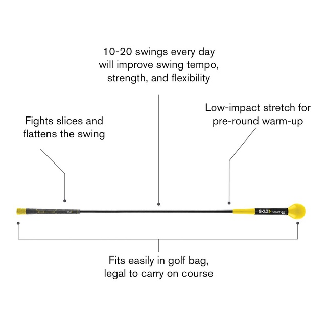The SKLZ Golf Flex 48" Golf Swing Trainer is the best-selling golf swing trainer that improves your swing tempo, strength, and flexibility. Favoured by many golf professionals as a warm-up and tempo training tool, this portable trainer allows continuous swinging without stopping at impact, helping flatten your swing and reduce slices through a smooth, metronome-like motion. Its low-impact design enables pre-round stretching while its compact size fits easily in your golf bag for convenient, legal on-course use.