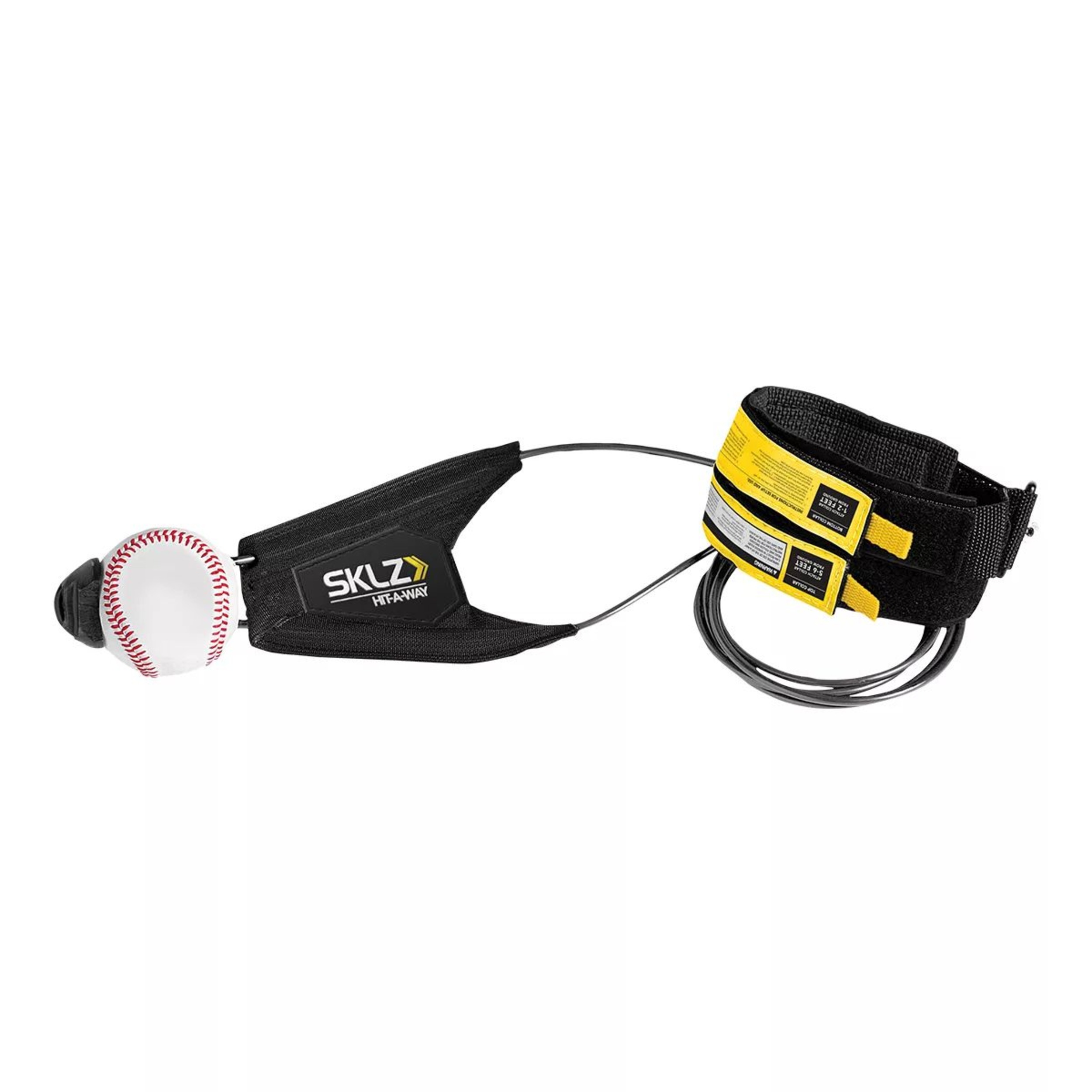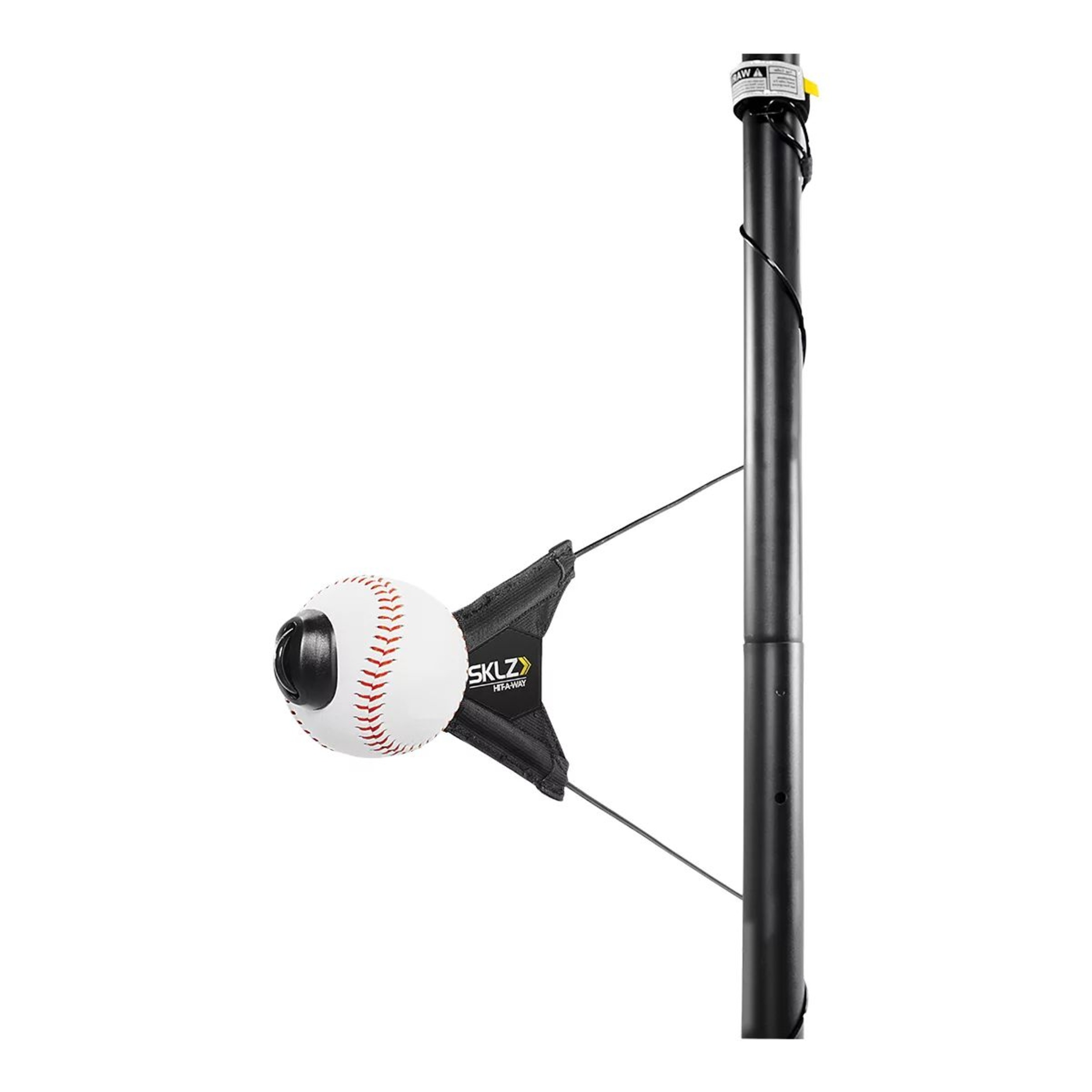 The Hit-A-Way Baseball is designed to aid in the development of swing and stance mechanics. Ideal for players of all levels, the trainer helps improve timing and player confidence. Featuring a tethered ball and cord that quickly attaches to any pole or tree, the Hit-A-Way allows players to swing consistently through a drill or practice without ever having to chase a ball. Ideal for repetition training, the aid allows players to get in more hits per hour. To stimulate real pitches for improved hand-eye coordination, simply use the hook-and-loop fasteners around any pole or tree. Easy to use, the Hit-A-Way can adjust to a variety of heights, making it the perfect training aid for baseball players of all ages. Lightweight and compact, the training aid can be used almost anywhere; on-the-go, on the field, or even in the backyard.