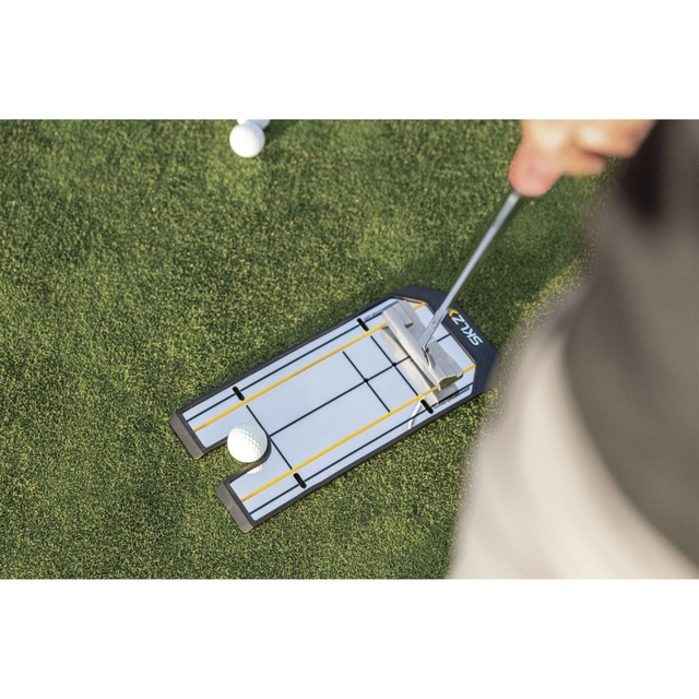 The True Line Putting Mirror is a premium putting mirror with a ball cutout to putt directly from the green. Designed with alignment markers, the putting mirror helps practice consistent head and eye alignment by properly setting up each time. The path lines help guide a square takeback and follow through resulting in a more reliable stroke. The built-in slots can create putt gates with tees for almost any putter heads. The premium, non-slip mirror is a convenient size for throwing in almost any golf bag to take to and from the practice green. The mirror measures at a compact 6½” x 12”.