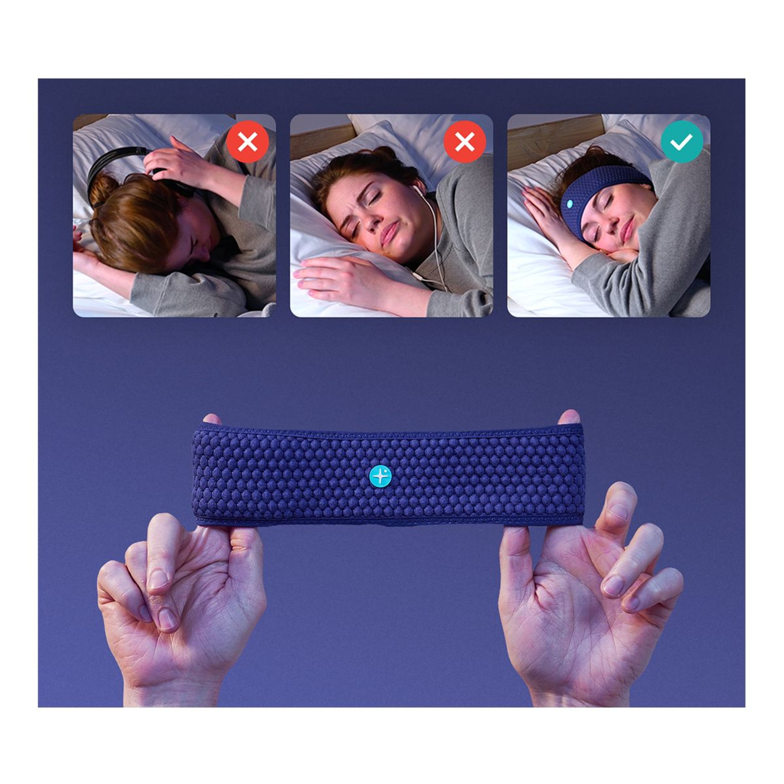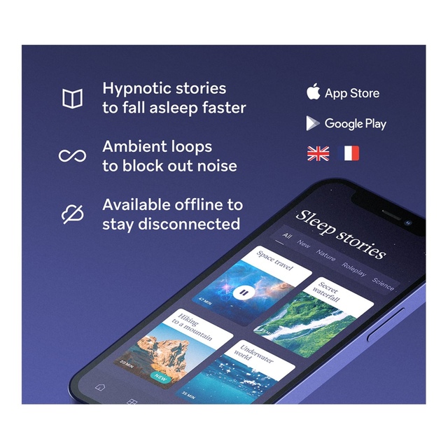 HoomBand is the first audio headband that whispers stories to help you fall asleep more quickly. Its fabric combines comfort, flexibility, and mobility. It is ultra-thin and has adjustable earphones, concealed under a thermoformed foam. The headband does not slip and does not tighten. M/L : 22-24.4 in. Unpublished content created by the best sleep specialists (hypnotherapists, sleep doctors, sophrologists, and sound designers). Fall asleep quickly, without effort or concentration. All stories and meditations are available on the app, which is only available to headband users. Stay disconnected with the available offline mode — regular and free updates. HoomBand works like headphones and can, therefore, be used with other music applications (perfect for sports, watching a film on the move, and so on). Whether for yourself or someone close to you, HoomBand will quickly become indispensable. It can be used anytime and anywhere to create YOUR bubble.