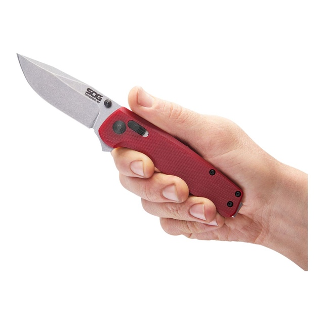 The SOG Terminus XR G10 Folding Knife combines robust construction and versatile functionality. Featuring an adjustable XR lock, durable G10 handles and stainless steel liners, this ambidextrous knife offers multiple opening methods and a swappable belt clip for easy transport. The SOG folding knife's utilitarian design is enhanced with a stonewashed finish.