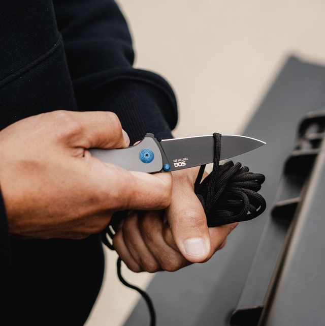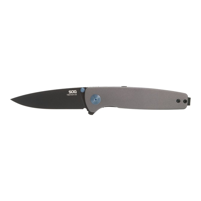 The SOG Twitch III Folding Knife is a sleek, spring-assisted knife that features SOG Assisted Technology (S.A.T.) for quick deployment and a satisfying click. It's easy to open using the dual thumb studs or the flipper tab. With a durable anodized aluminum handle and a reversible tip-up pocket clip, this knife accommodates both right and left-handed users.