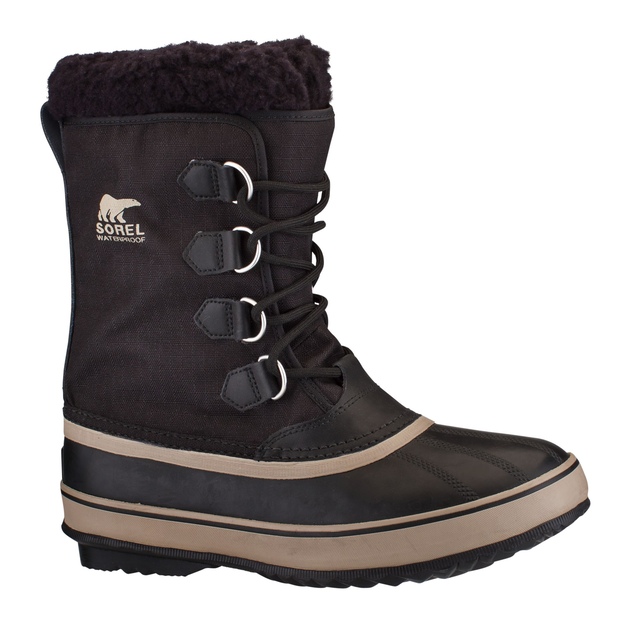 Winter weather is no match for the Sorel Men's 1964 PAC Nylon Insulated Waterproof Winter Boots. These boots have a durable waterproof nylon upper and a handcrafted vulcanized rubber shell for cold-weather comfort and protection. A removable inner felt boot and Sherpa snow cuff help keep the frigid temperatures at bay, while a herringbone outsole provides enhanced traction for secure footing on icy surfaces.