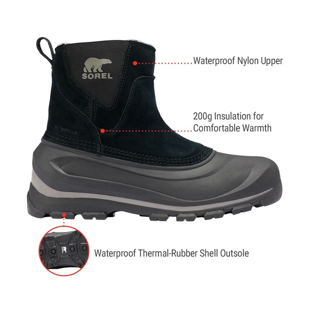 Experience warmth and protection with the Sorel Men's Buxton Pull On Winter Boots. Designed for cold, wet conditions, these boots feature 200g insulation, seam-sealed waterproof construction and a removable EVA footbed for extra comfort. With a durable traction outsole that ensures stability in slippery environments, these Sorel winter boots are ideal for unpredictable weather.