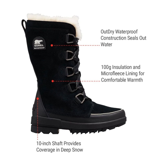 Keep the cold weather out with Sorel Women's Tivoli IV Tall Winter Boots. These eye-catching boots feature a waterproof suede and PU-coated leather exterior that never sacrifices comfort for style. Interior insulation and a microfleece lining provide lasting warmth, while exterior OutDry⢠technology keeps wet and windy weather at bay.