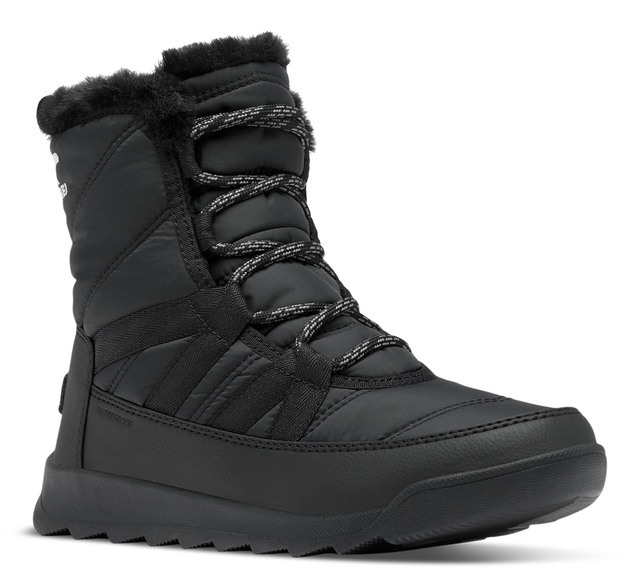 The 'Sorel Women's Whitney™ II Plus Lace Waterproof Winter Boots offer mountain toughness and city style. Whether you're exploring the mountains, trails, or the city, this all-weather boot is up for the adventure. It features a waterproof nylon upper with PU coated synthetic overlays, microfleece lining and waterproof bootie construction for added protection. With 200g insulation and molded rubber cupsole construction, this boot offers both warmth and durability.