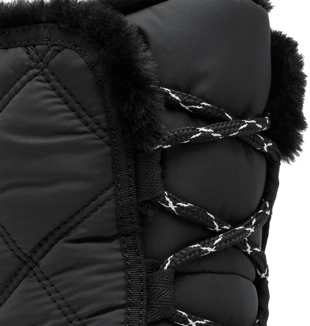 • Waterproof nylon upper and PU coated synthetic overlays. Faux fur cuff on colorway 010 or textile cuff on colorway 061. Microfleece lining. Waterproof bootie construction. Nylon heel pull tab. Laces are not waterproof.