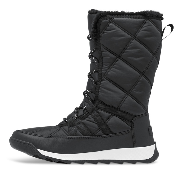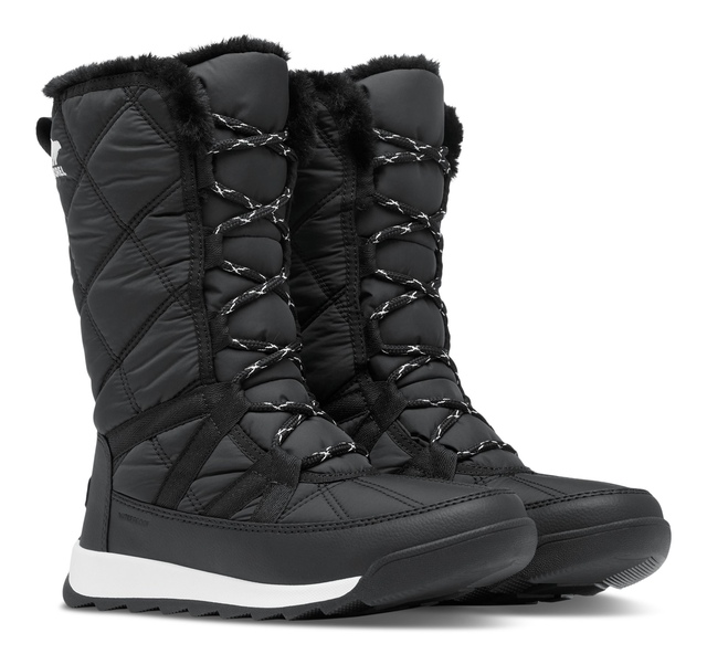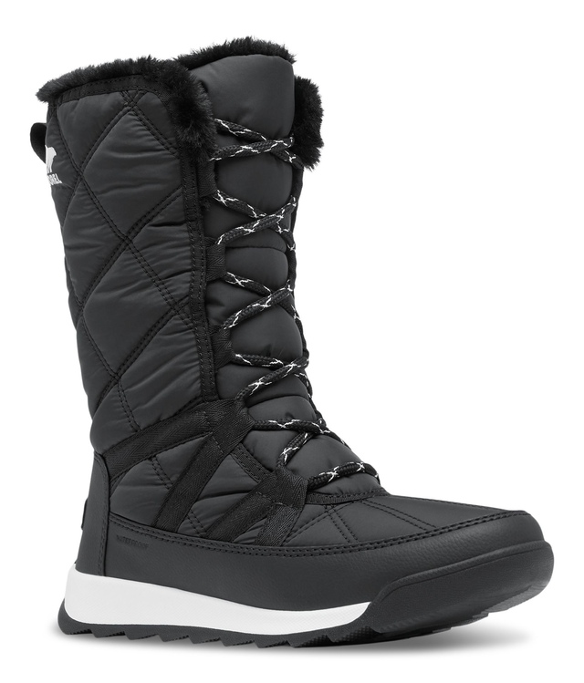 The 'Sorel Women's Whitney™ II Plus Tall Lace Waterproof Winter Boots combines city style with mountain ruggedness, creating an unbeatable option for outdoor adventures. It features a waterproof nylon upper with PU coated synthetic overlays. These boots have a microfleece lining and waterproof bootie construction for added protection and includes a nylon heel pull tab. With 200g insulation and molded rubber cupsole construction, this boot offers both warmth and durability for your outdoor endeavors.